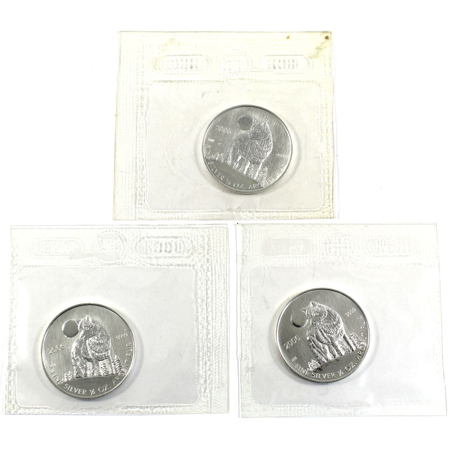 2006 Canada 1/2oz .9999 Fine Silver Wolf in Sealed Mint Plastic (lightly toned). 3pcs (TAX Exempt)