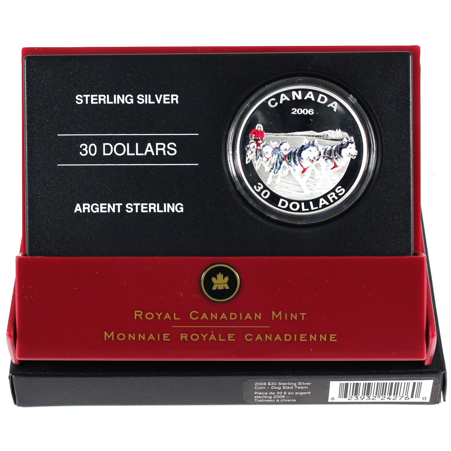 2006 Canada $30 Dog Sled Team Sterling Silver Coin. Comes with all original packaging. This coin is beautiful and bright!