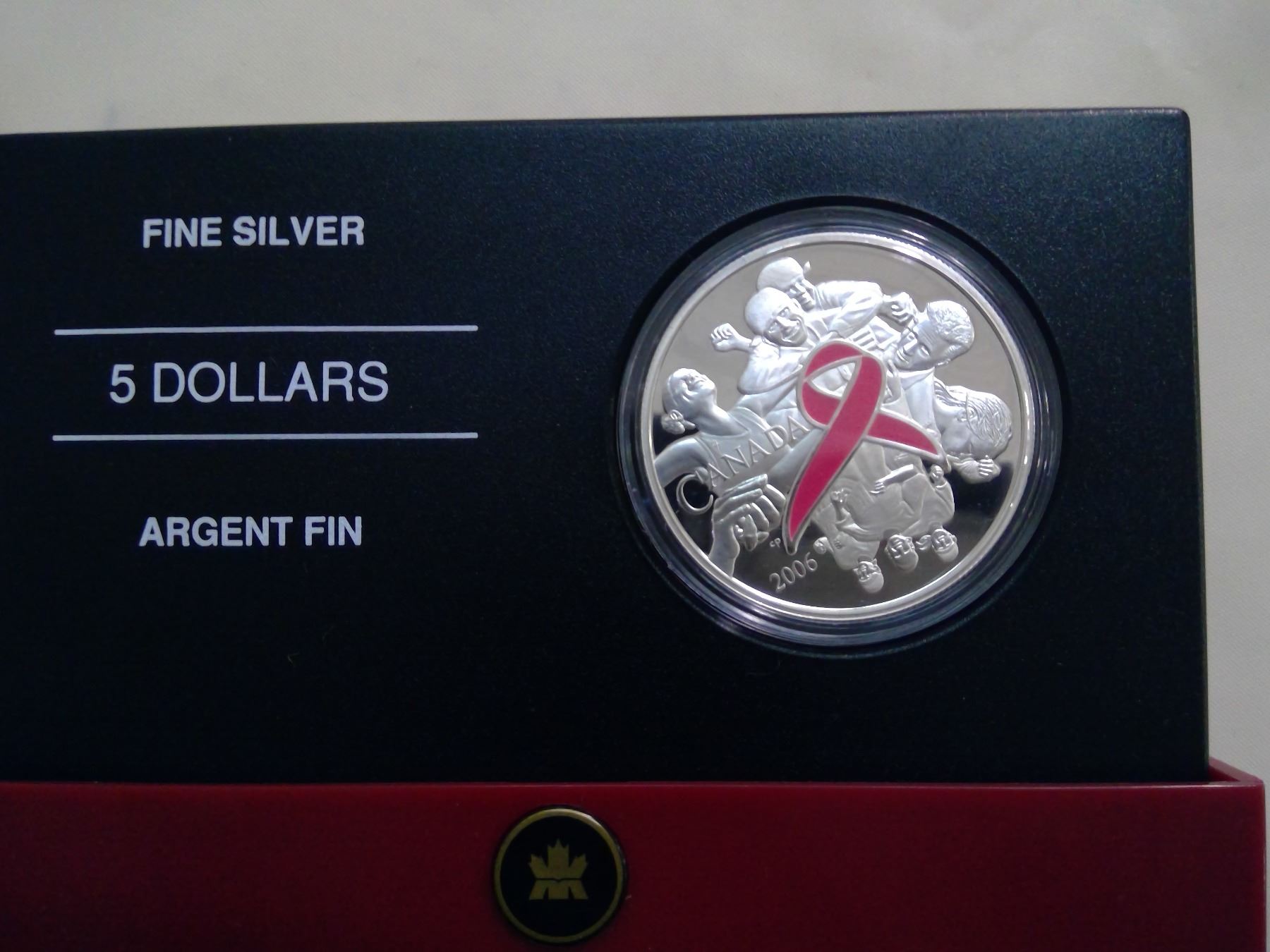 2006 Canada Fine Silver Proof $5 Breast Cancer Awareness, Pink Ribbon, COA