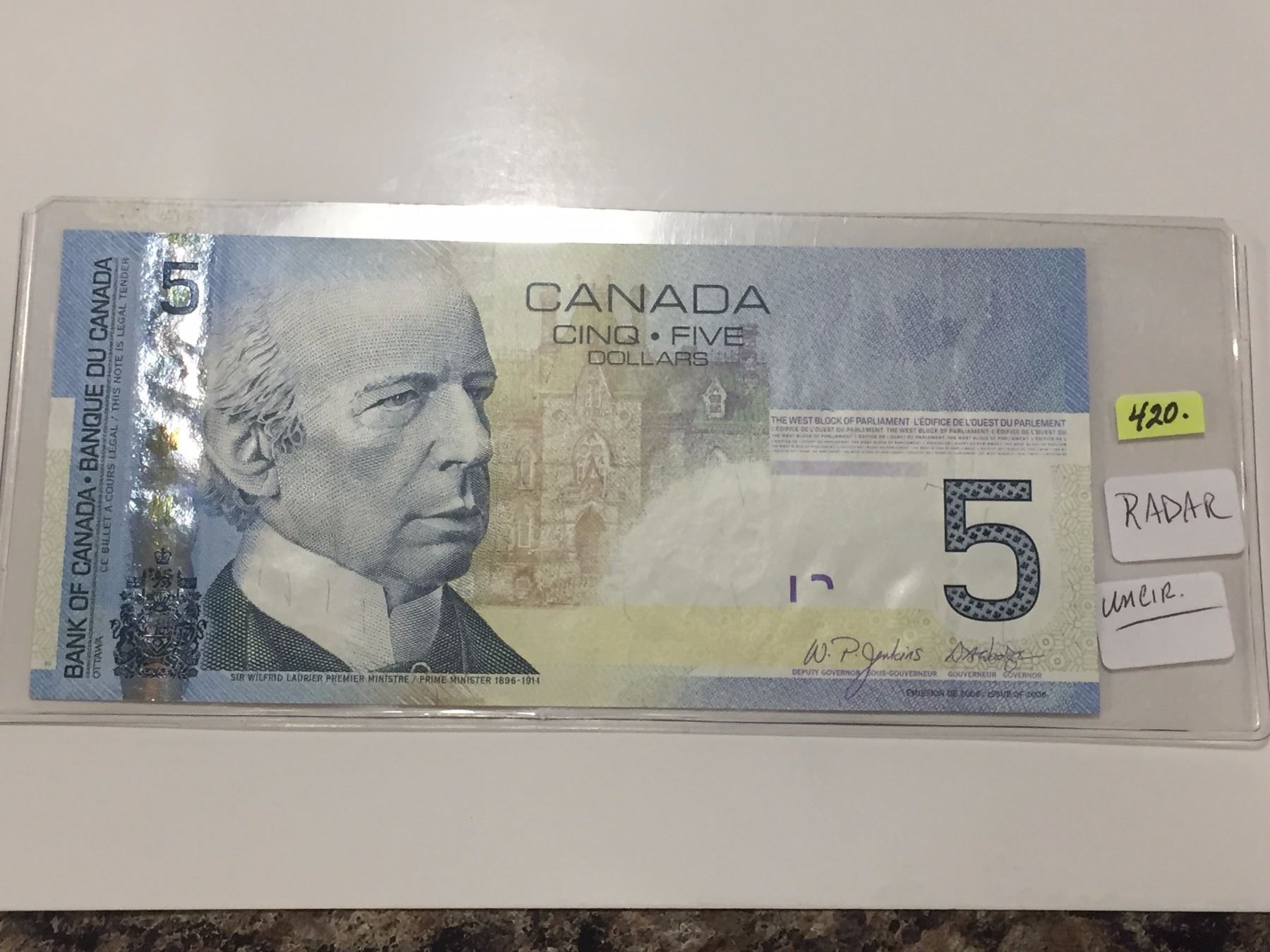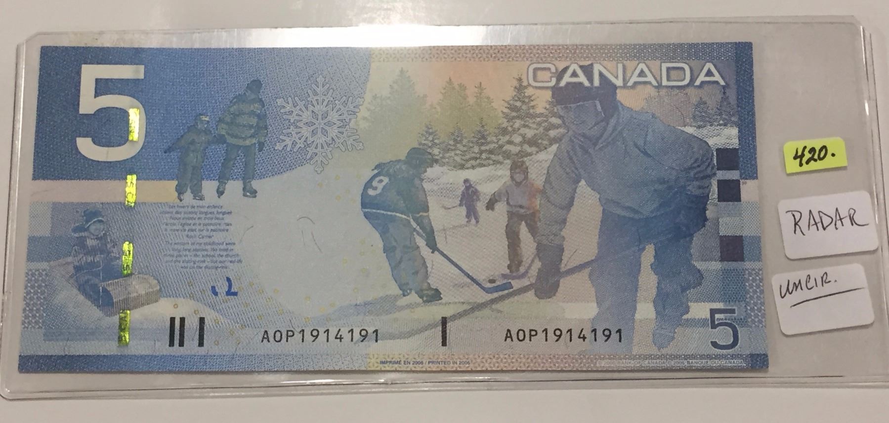 2006 Canada Five Dollar Bill; Radar Note; SN AOP 1914191