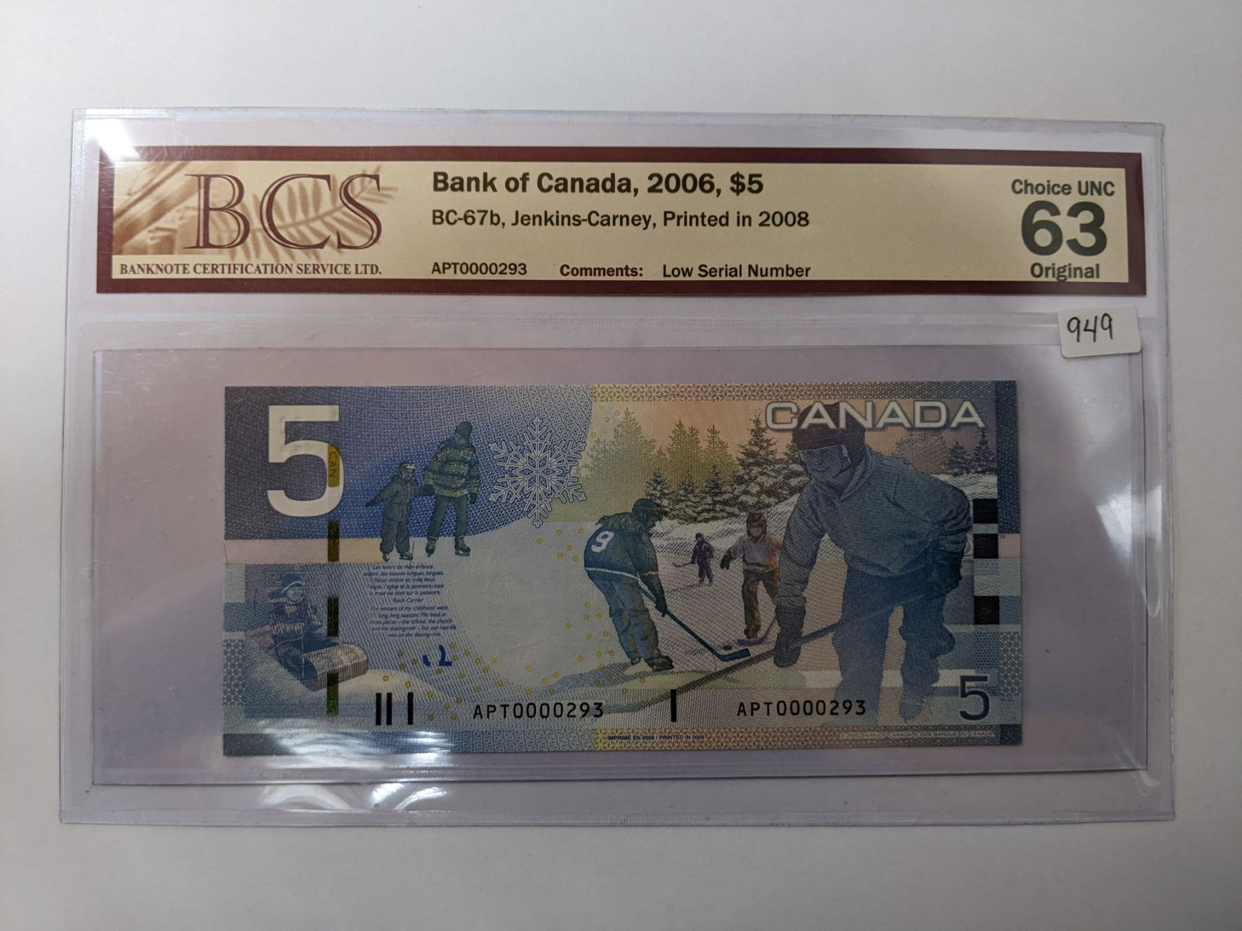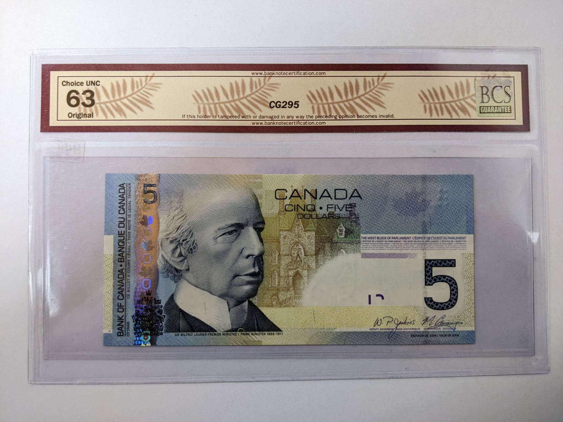 2006 Canadian $5 Bill - BCS Graded, Low Serial #, Choice UNC 63