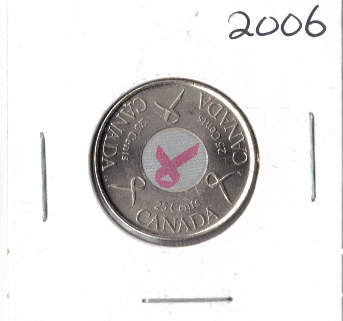 2006 Canadian Twenty-Five Cent - Pink Ribbon - Coloured