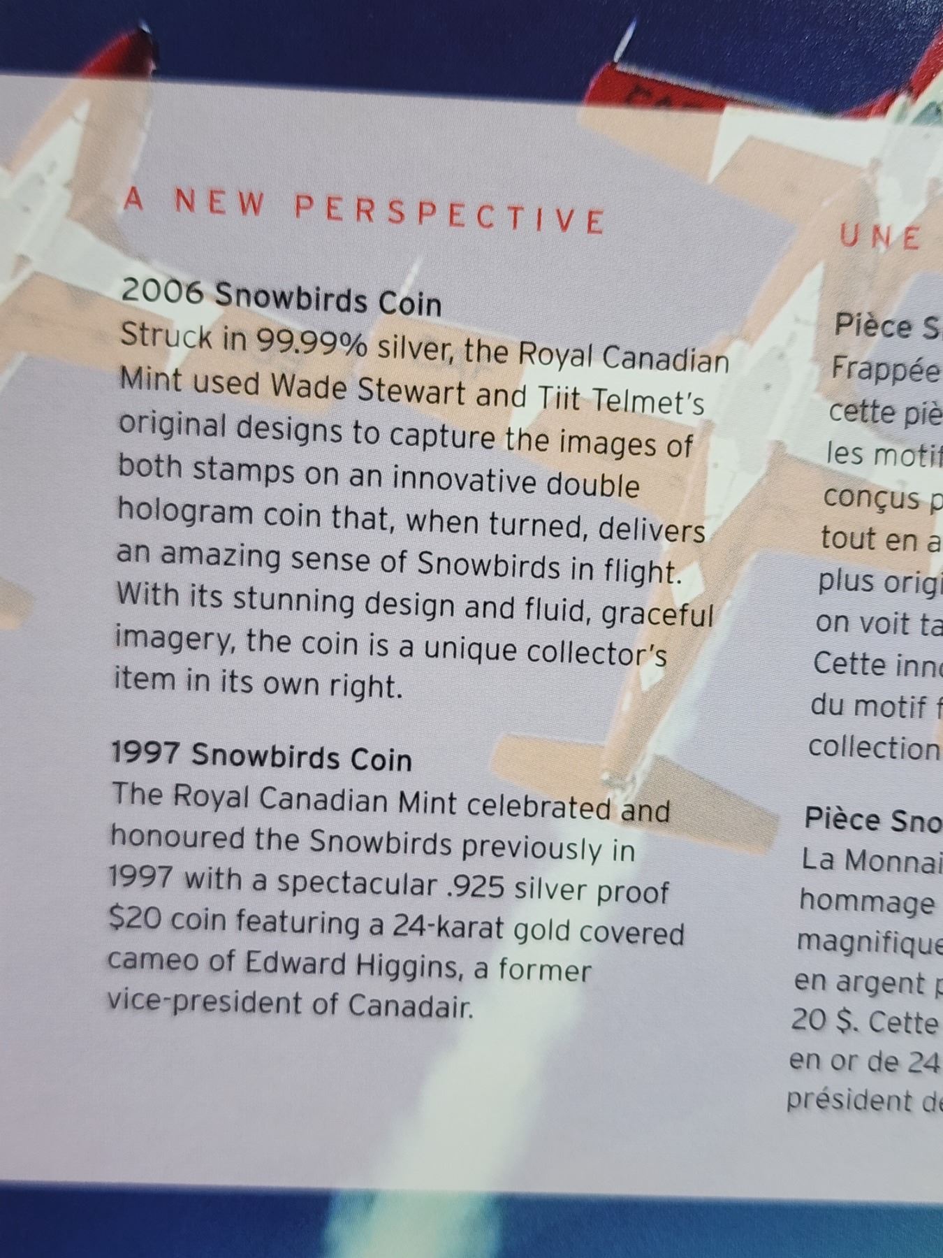 2006 Canadian snowbirds stamp and coin set - 5 dollar silver coin - #21,199/25,555