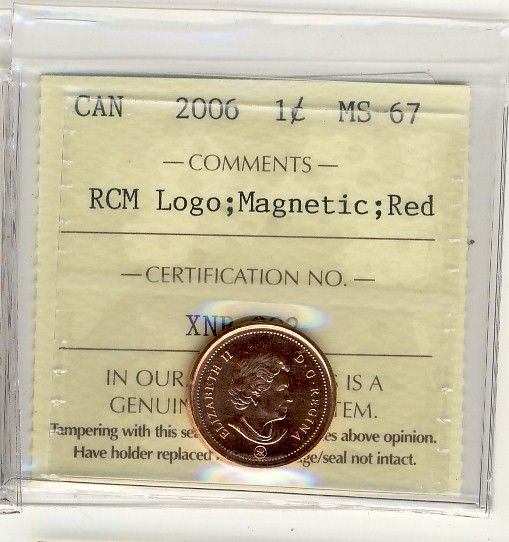 2006, Cents ICCS MS67; Red, Cents RCM Logo Magnetic.