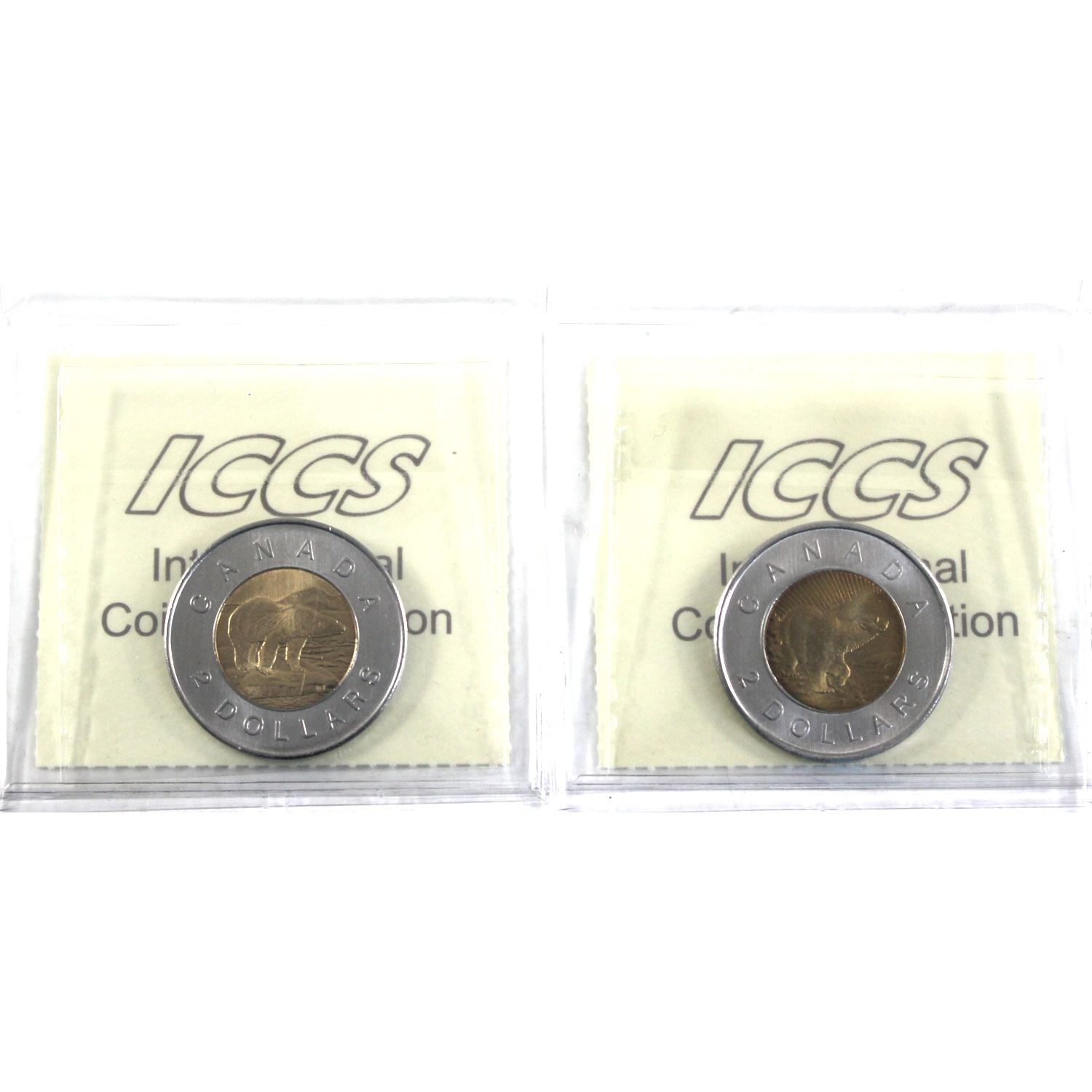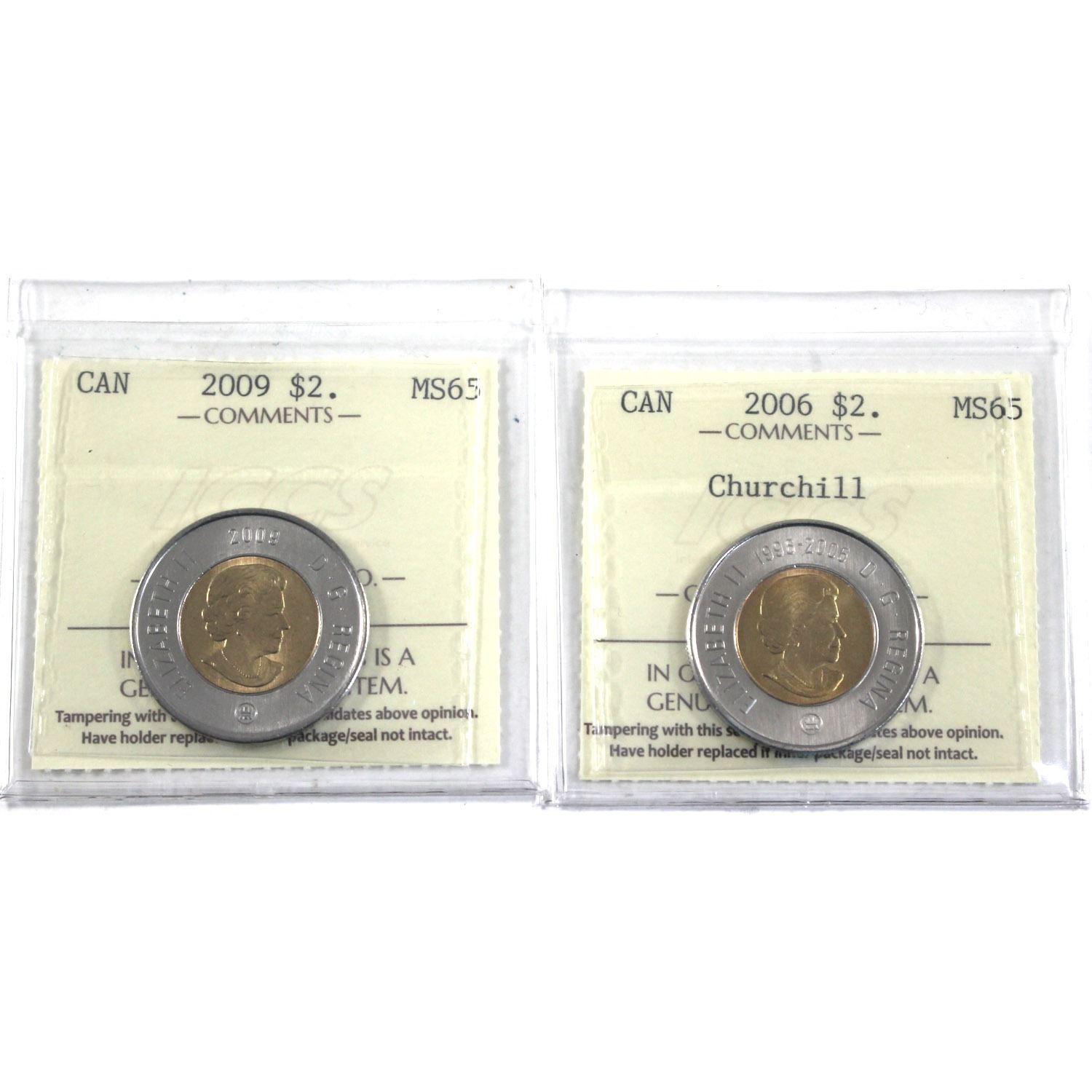 2006 Churchill & 2009 Canada Two Dollar ICCS Certified MS-65. 2pcs
