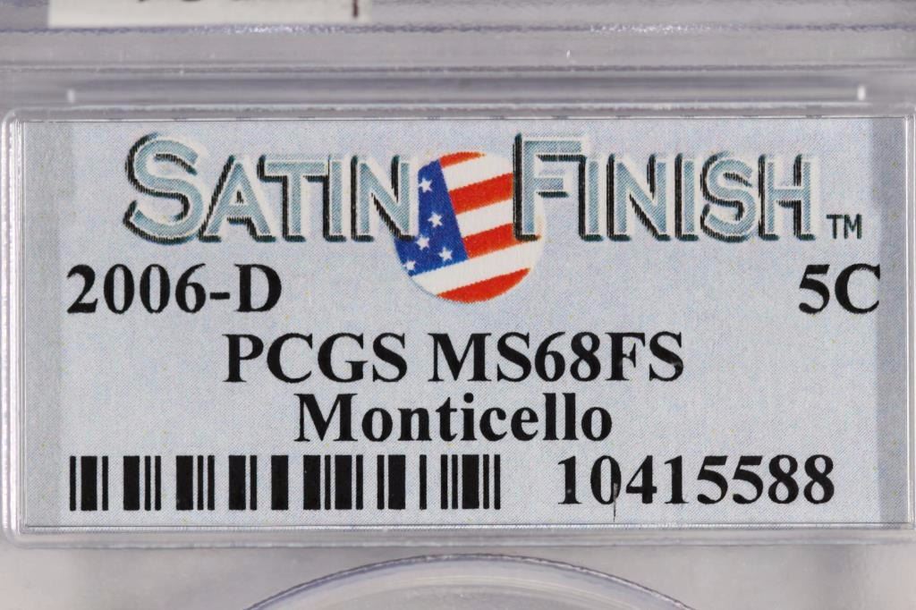 2006-D MONTICELLO NICKEL PCGS MS68FS SATIN FINISH