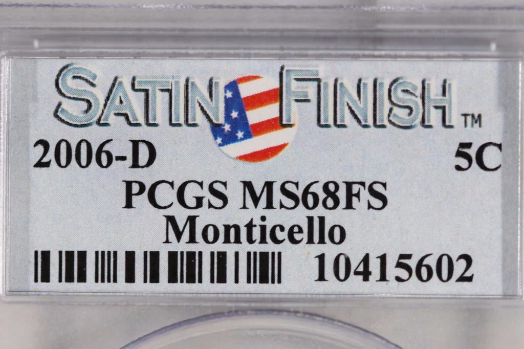 2006-D MONTICELLO NICKEL PCGS MS68FS SATIN FINISH