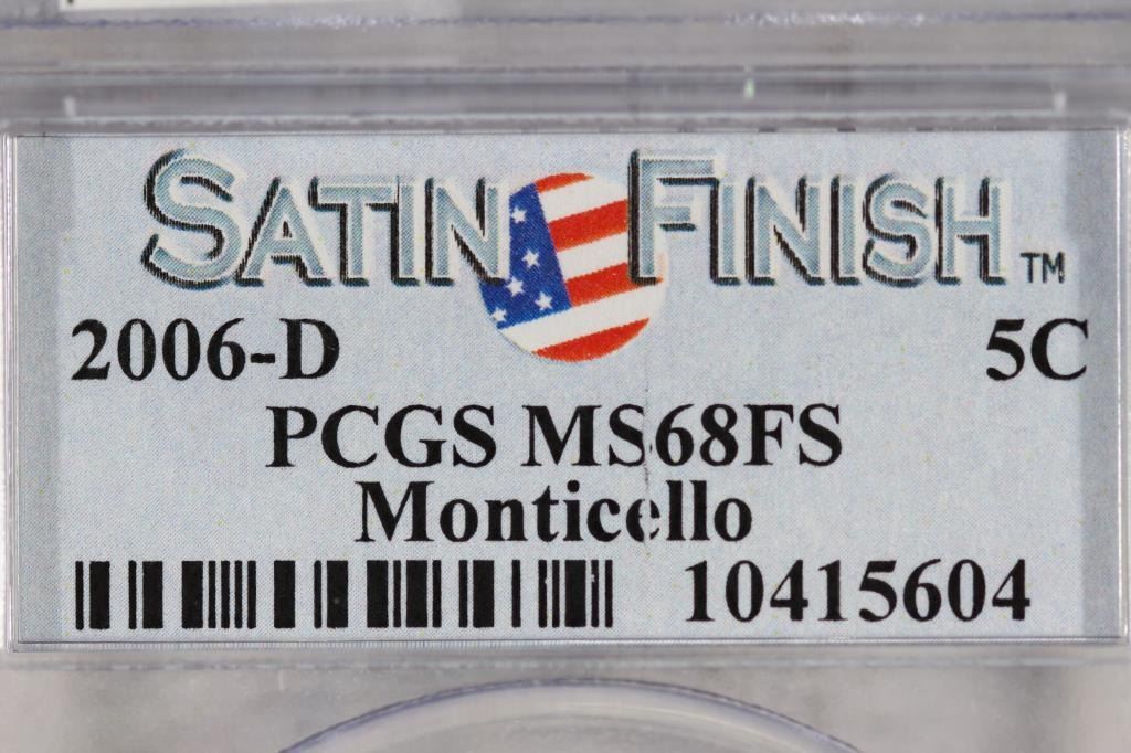 2006-D MONTICELLO NICKEL PCGS MS68FS SATIN FINISH