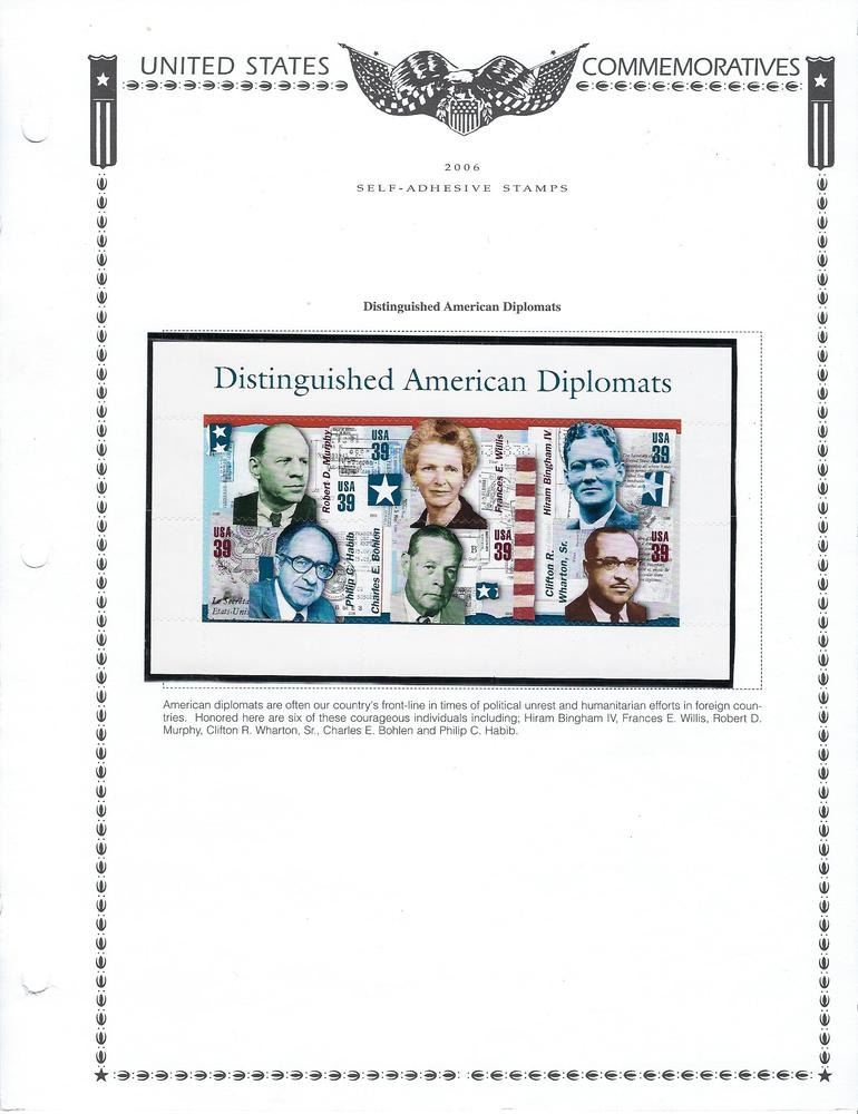 2006 Distinguishes American Diplomats Commemorative Stamp Sheet