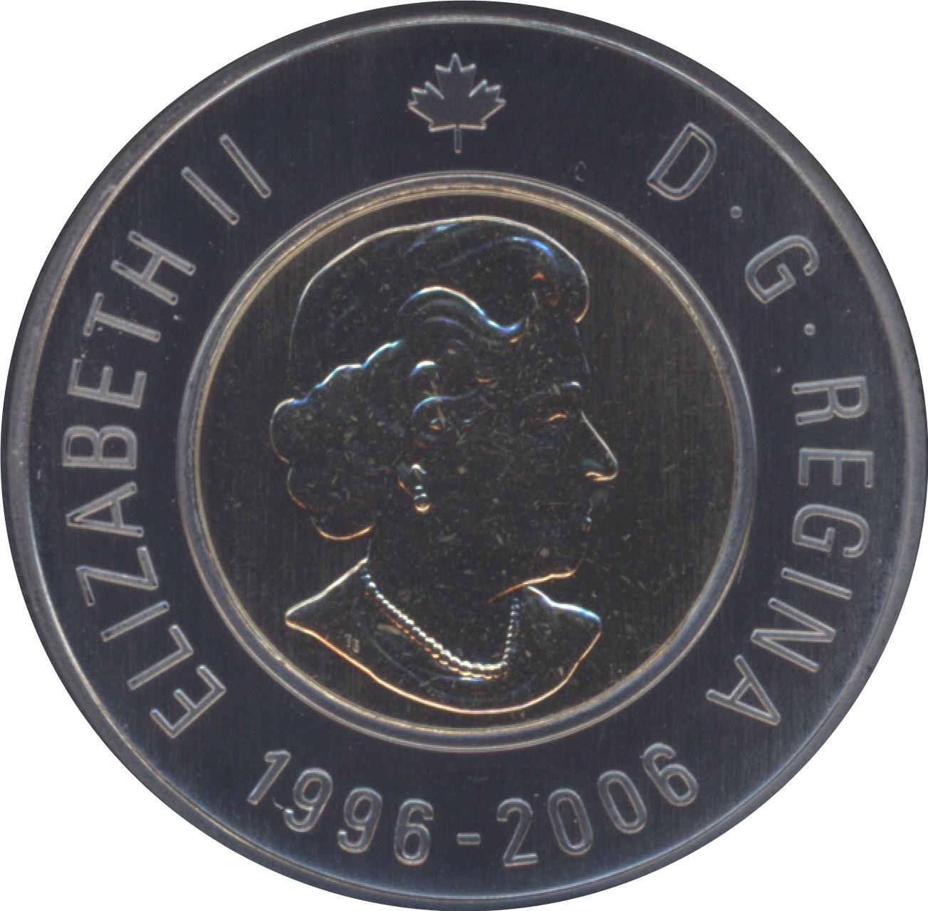 2006 Double date (10th anniversary of the Twoonie) specimen Twoonie relief Cameo model