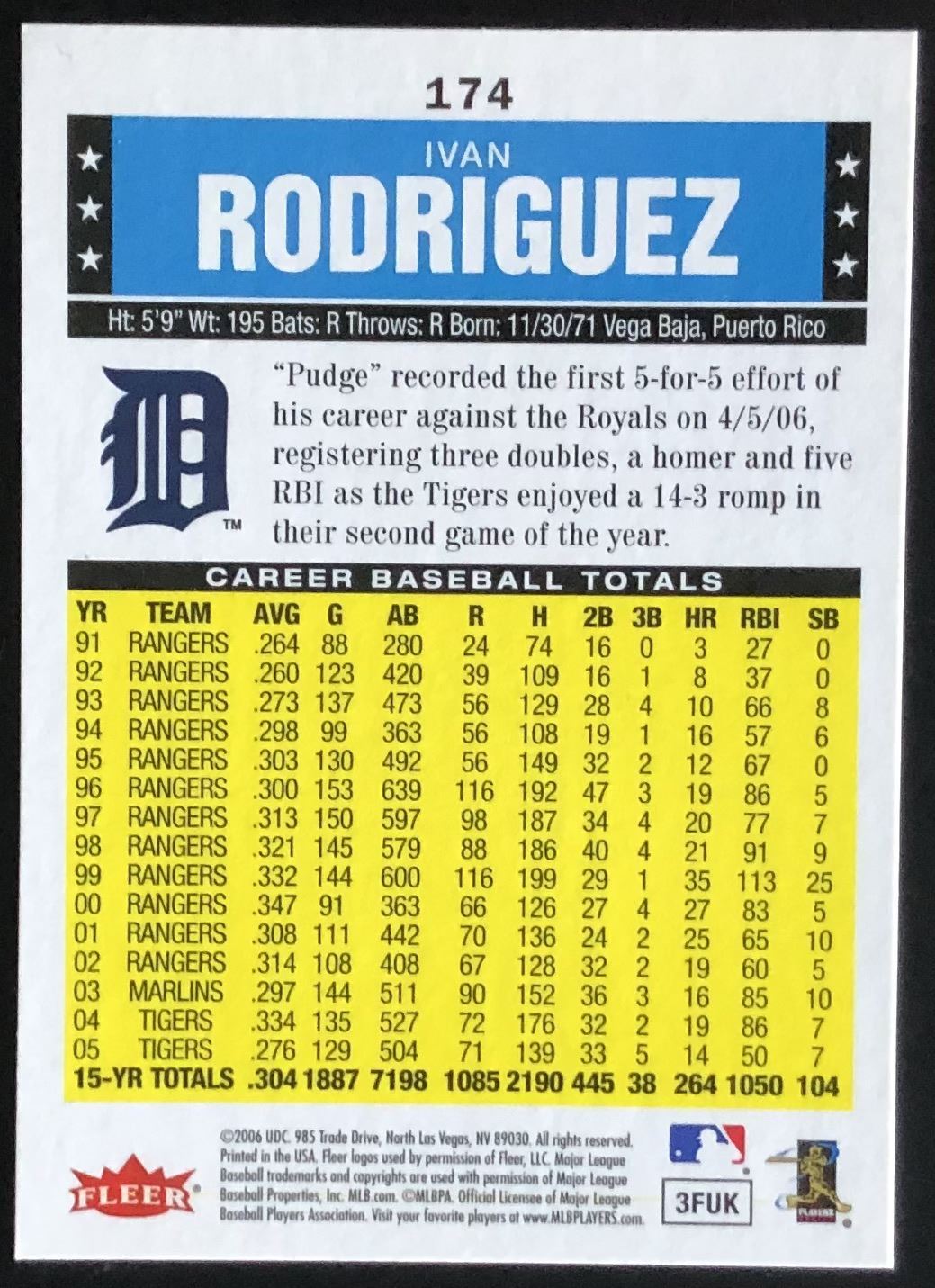 Card #174 MLB, baseball, hall of fame