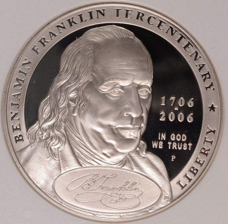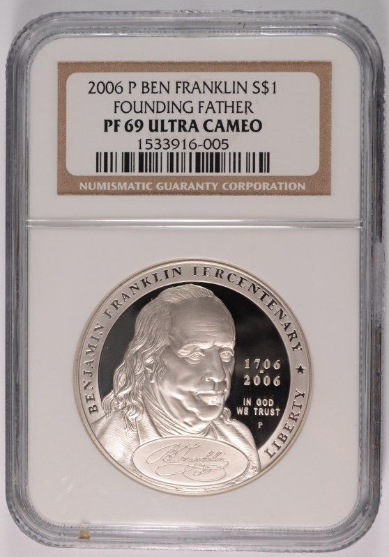 2006 FRANKLIN ( FOUNDING FATHER ) COMMEMORATIVE SILVER DOLLAR, NGC MS-69 UC