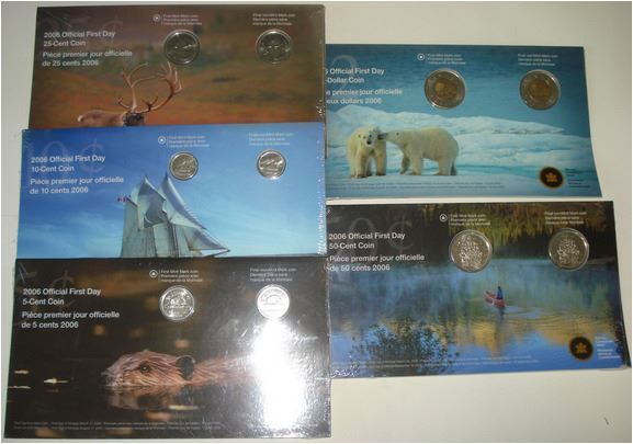 5¢ 10¢ 25¢ Very Rare 50¢ have the old P stamped on one coin and new Logo the other.