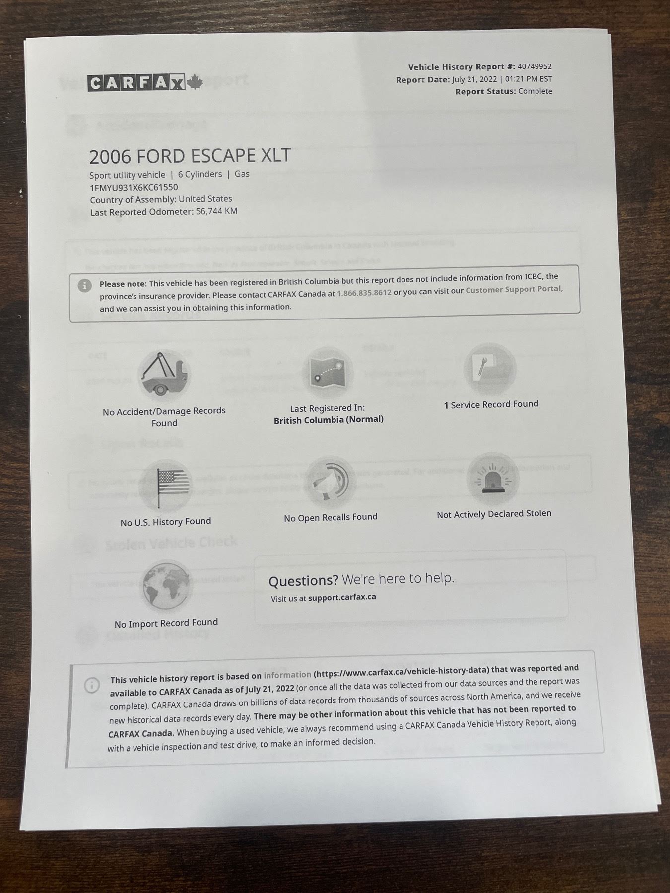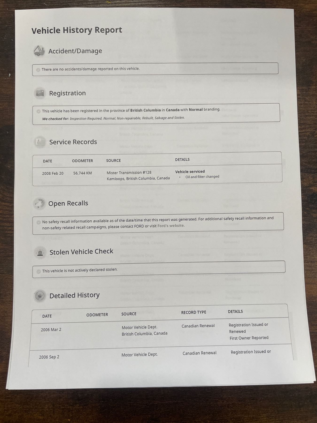Carfax report in photos