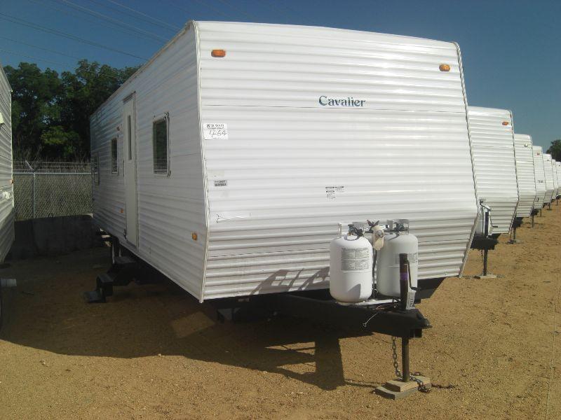 2006 GULF STREAM CAVALIER 8'X32' CAMPER TRAILER, S/N 1NL1GTR2961014322, SLEEPS 8, QUEEN BED, BUNK BEDS, REFRIGERATOR, MICROWAVE, HEAT, AIR, STAND UP SHOWER, TUB (A 10% ADMINISTRATIVE FEE APPLIES TO EACH TRAILER REGARDLESS OF PRICE)