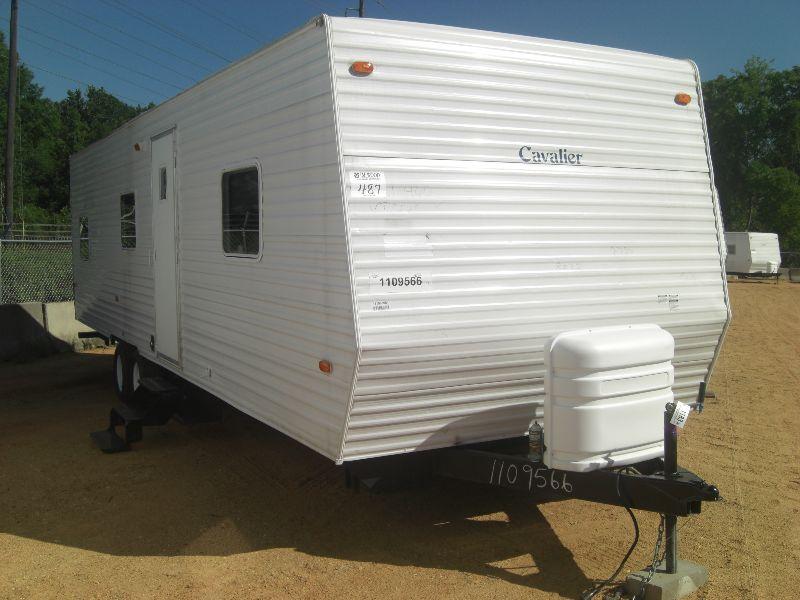 2006 GULF STREAM CAVALIER 8'X32' CAMPER TRAILER, S/N 1NL1GTR2X61023479, SLEEPS 8, QUEEN BED, BUNK BEDS, REFRIGERATOR, MICROWAVE, HEAT, AIR, STAND UP SHOWER, TUB (A 10% ADMINISTRATIVE FEE APPLIES TO EACH TRAILER REGARDLESS OF PRICE)