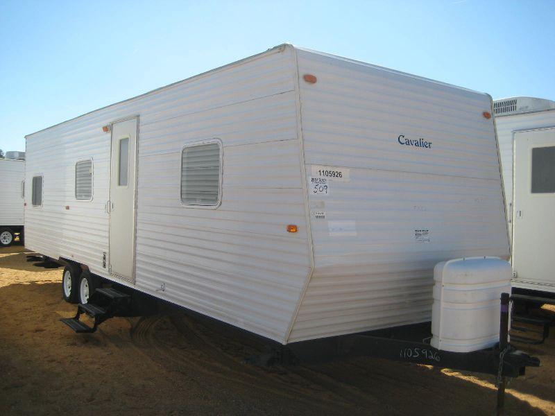 2006 GULF STREAM CAVALIER 8'X32' CAMPER TRAILER, S/N 1NL1GTR2561073514, SLEEPS 8, QUEEN BED, BUNK BEDS, REFRIGERATOR, MICROWAVE, HEAT, AIR, STAND UP SHOWER, TUB (A 10% ADMINISTRATIVE FEE APPLIES TO EACH TRAILER REGARDLESS OF PRICE)