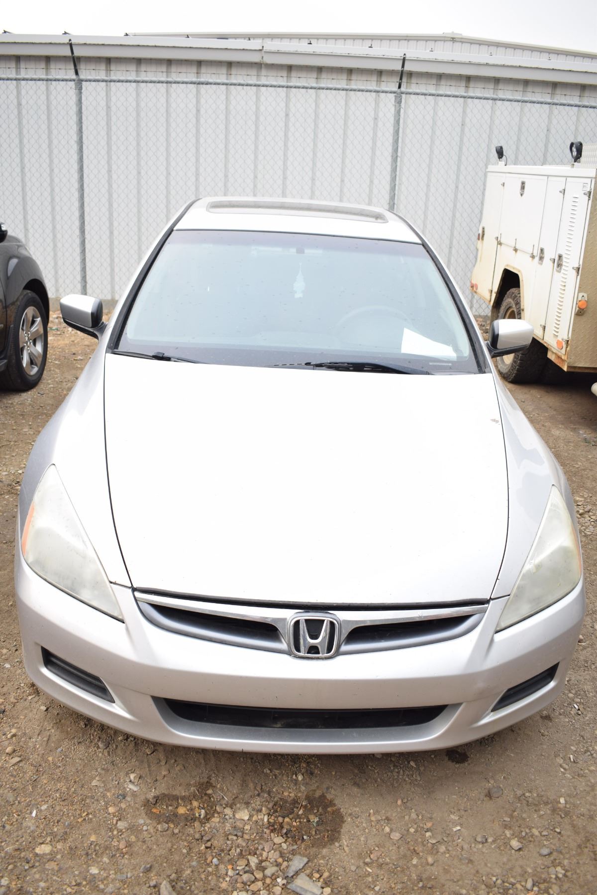 VIN: 1HGCM663X6A802372 KM: 235826 Engine: V6 Color: SILVER 2006 HONDA ACCORD, AIR CONDITIONING, CRUISECONTROL, POWER DOOR LOCKS, POWER WINDOWS, SUNROOF, 6 DISC CD CHANGER, POWER MIRRORS, CLOTH SEATS, NEEDS POWER STEERING FLUID, ABS LIGHT TURNS ON AND OFF, ALL BIDS SUBJECT TO BANK, BAILIFF OR OWNER APPROVAL. ALL VEHICLES ARESOLD AS IS.