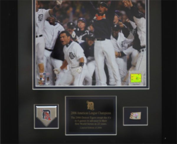 2006 Â Limited Edition American League Champions **|**|** 2006 Limited Edition American League Champions the Detroit Tigers framed photograph world series 2006. Actual Major League Baseball piece included in frame. (On the back sticker shows picture of Major league baseball prior to cutting. The 2006 Detroit Tigers swept the As in for games to advance to their first World Series in 22 years. Limited Edition of 2006. ; MSRP: $0