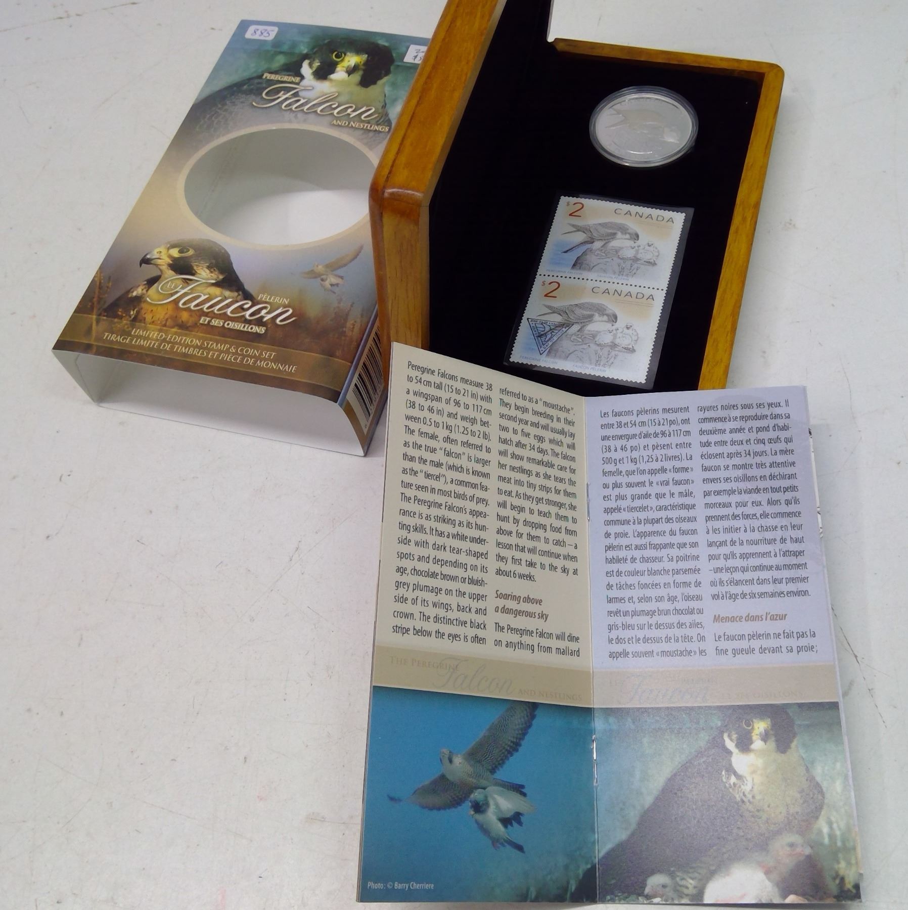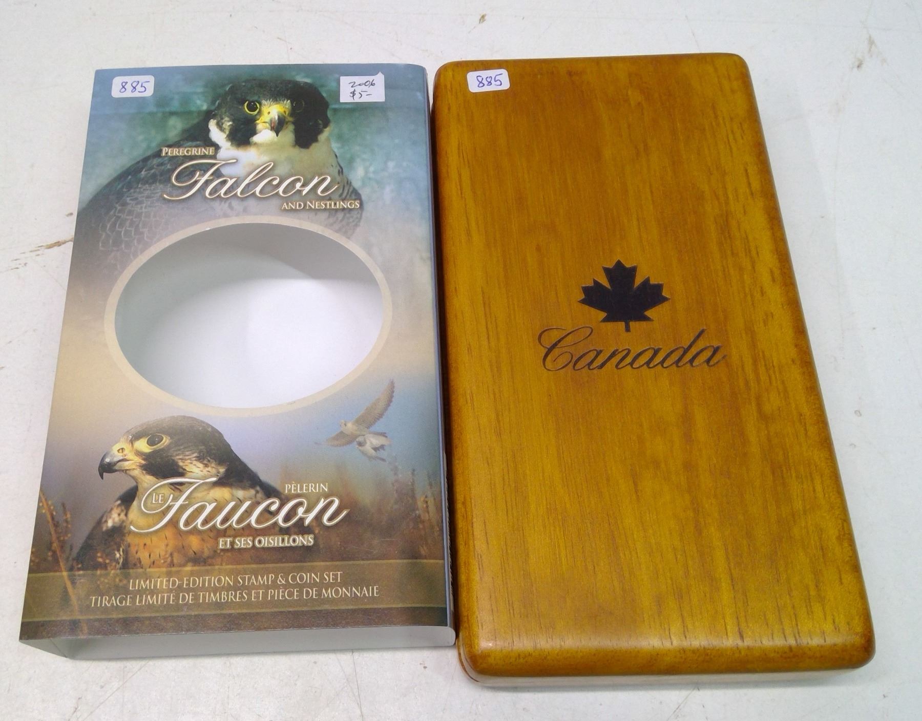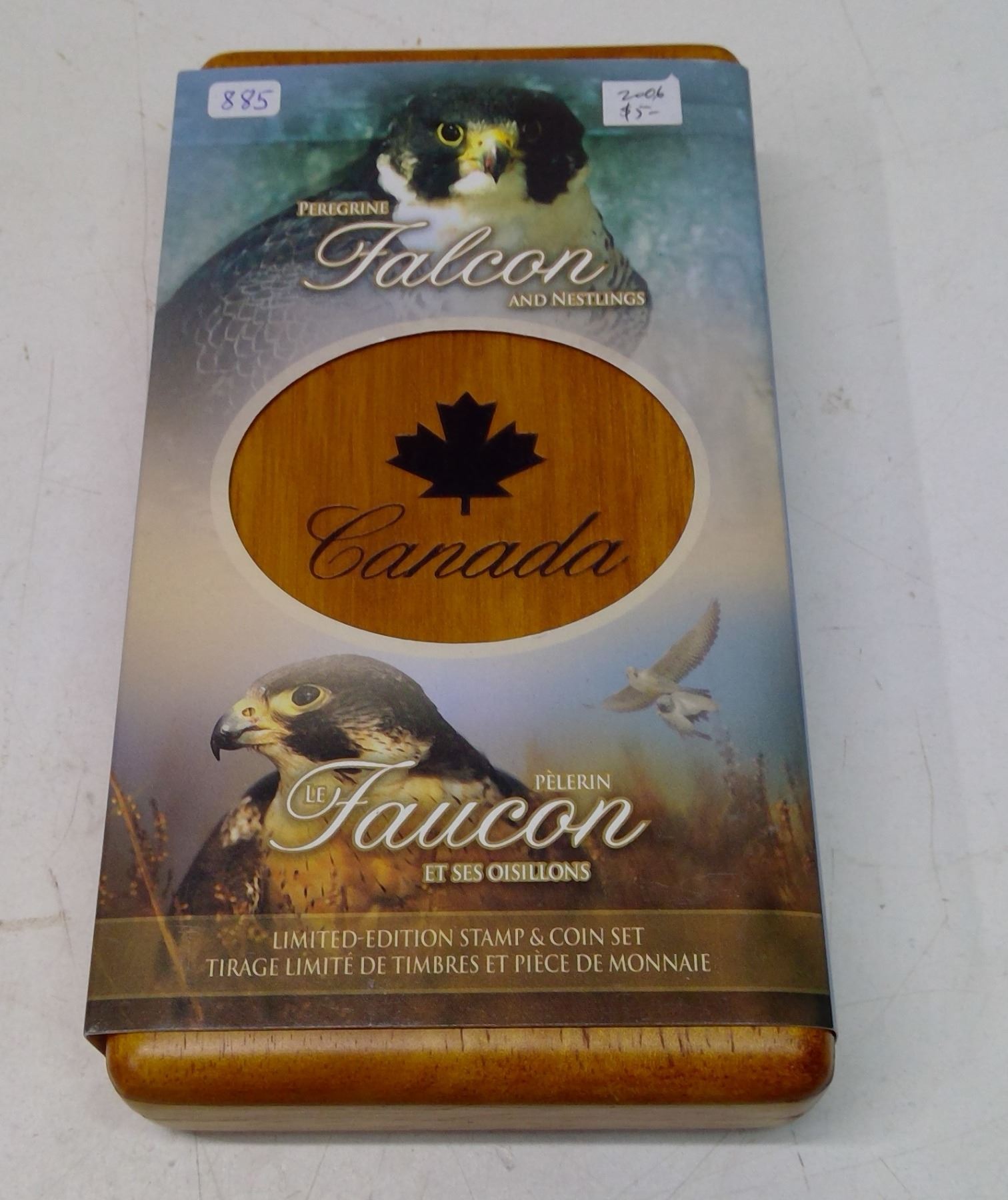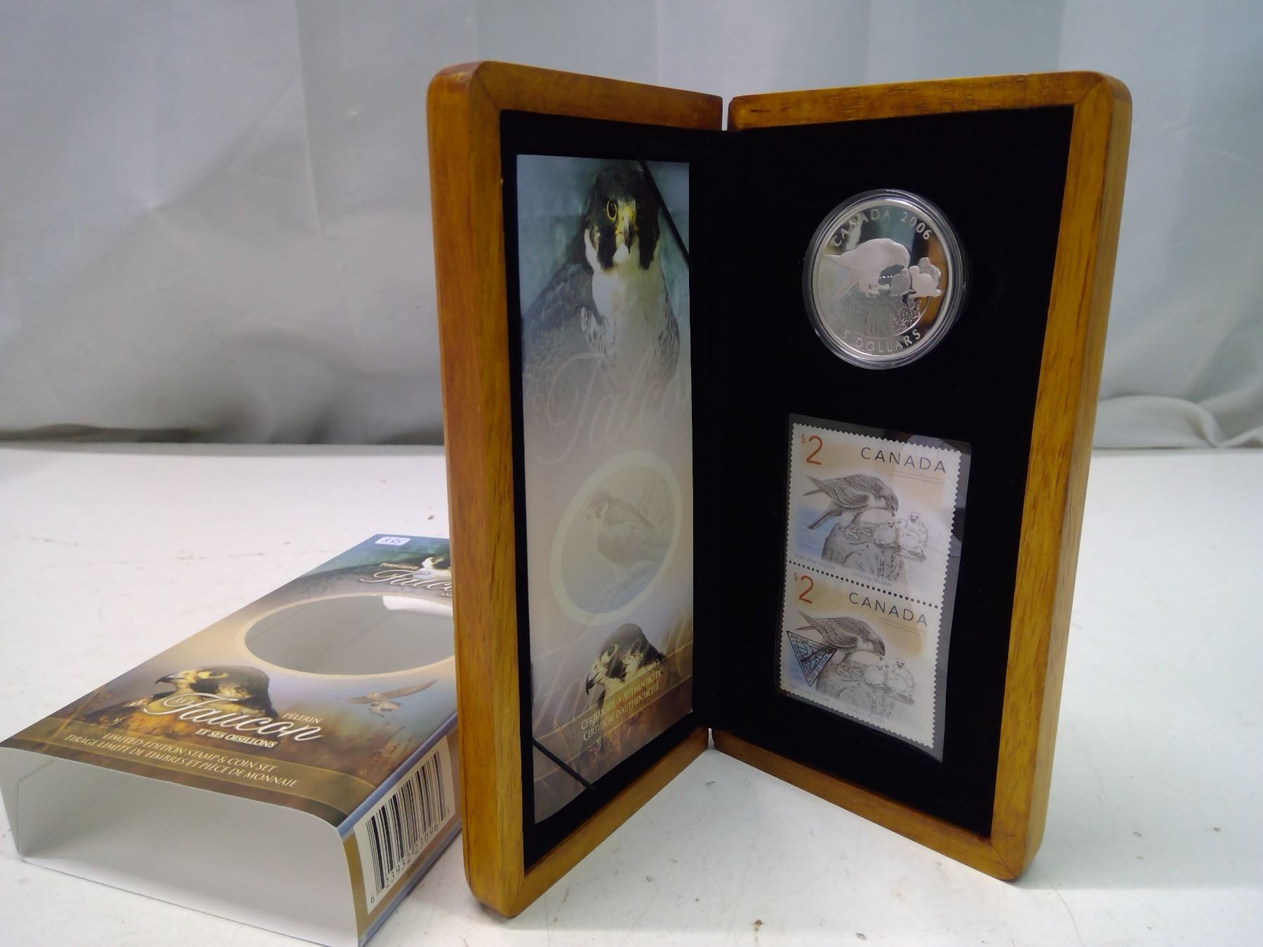 2006 Limited Edition Peregrine Falcon & Nestlings $5 Stamp & Coin Set. Includes 2 $2 Stamps. The coin is 99.99% pure Silver. Proof with Ultra Heavy Cameo. Housed in its original Royal Canadian Mint case & box of issue. Includes Certificate of Authenticity.