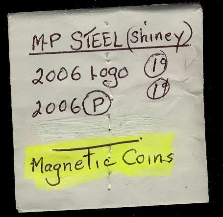 2006 Logo 1¢. Lot of two coins, 1 x magnetic and 1 x Zinc. Both BU.