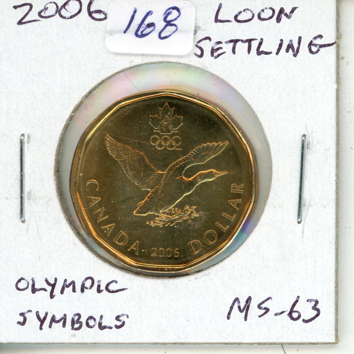 2006 Loon Settling Loonie Dollar. Olympic symbols. MS-63 from an original Royal Canadian Mint roll.