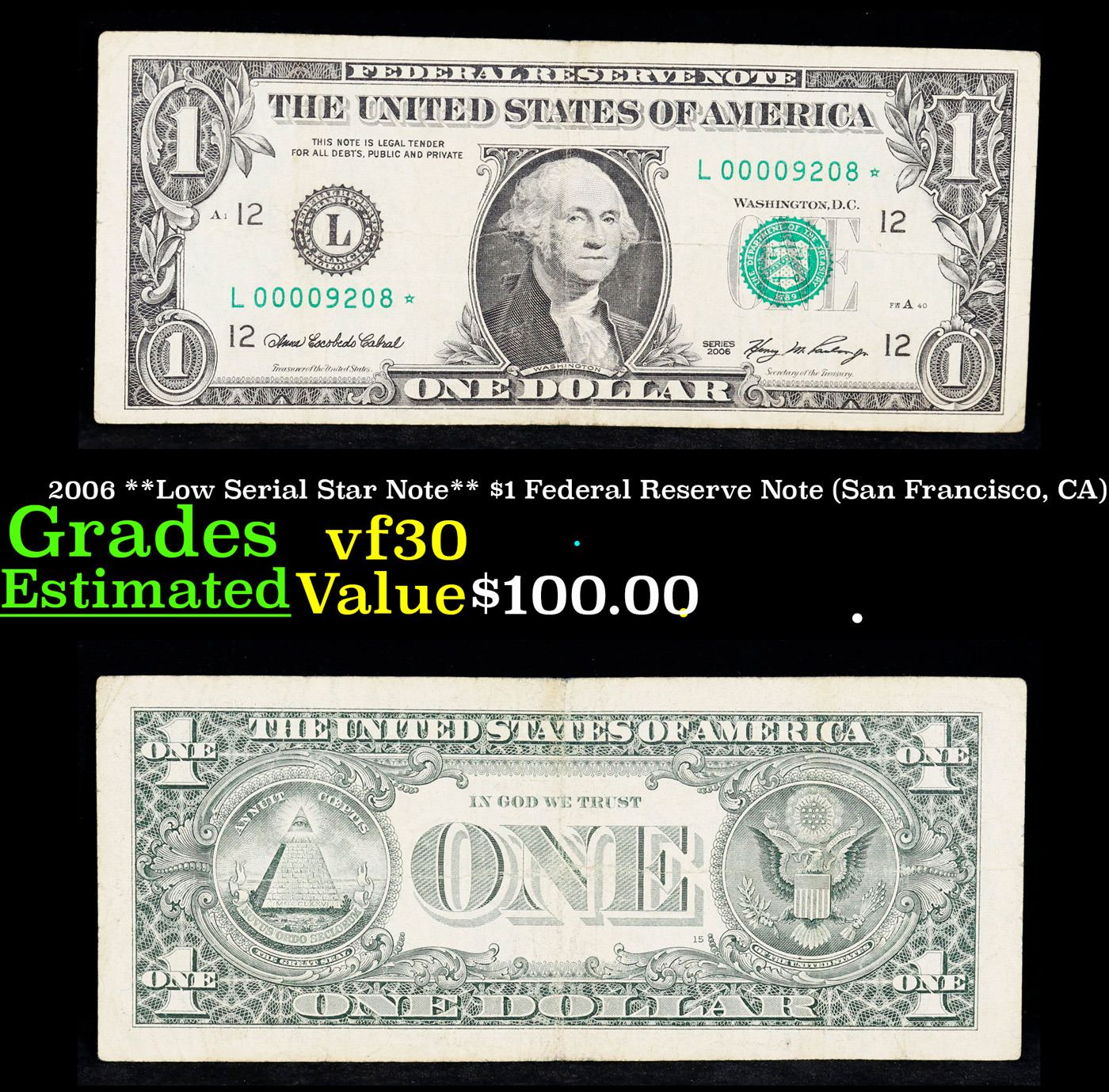 2006 **Low Serial Star Note** $1 Federal Reserve Note (San Francisco, CA) Grades vf++