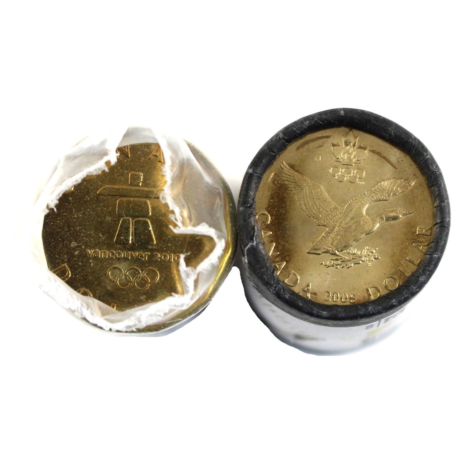 2006 Lucky Loonie & 2010 Inukshuk Loon $1 Original Rolls of 25pcs. 2 rolls
