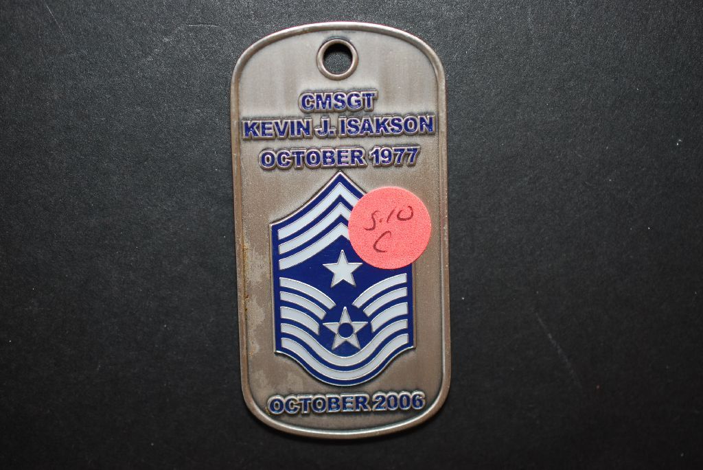 2006 Military Challenge Medal (Dog Tag Style) Dedicated To Those Who Carry The Load; CMSGT Kevin J Isakson October 1977; EST. $5-10