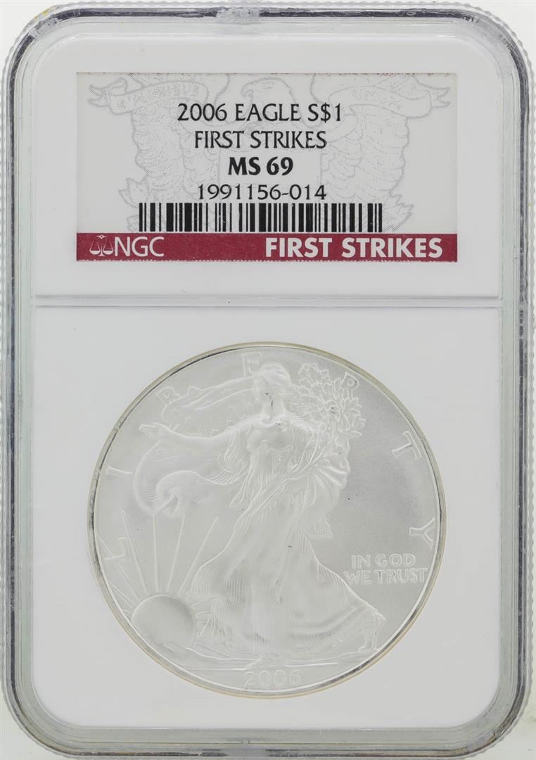 One 2006 NGC MS69 First Strike American Silver Eagle Dollar Coin. NGC Certified.