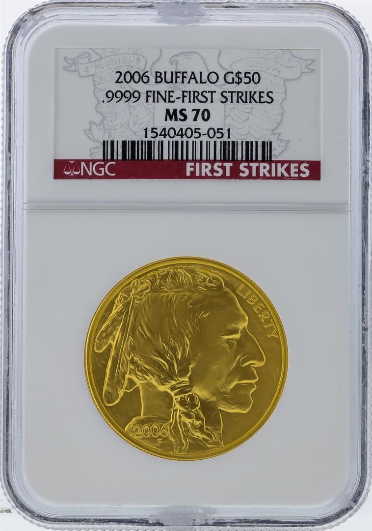 One 2006 NGC MS70 $50 Buffalo .9999 Fine First Strike Gold Coin. NGC Certified.