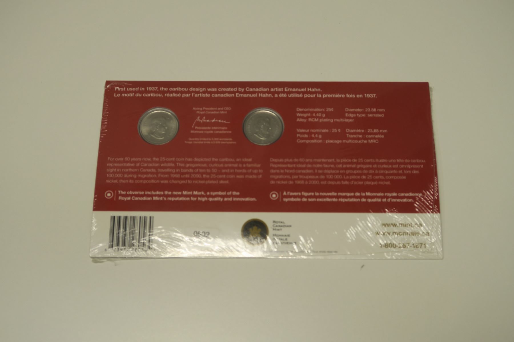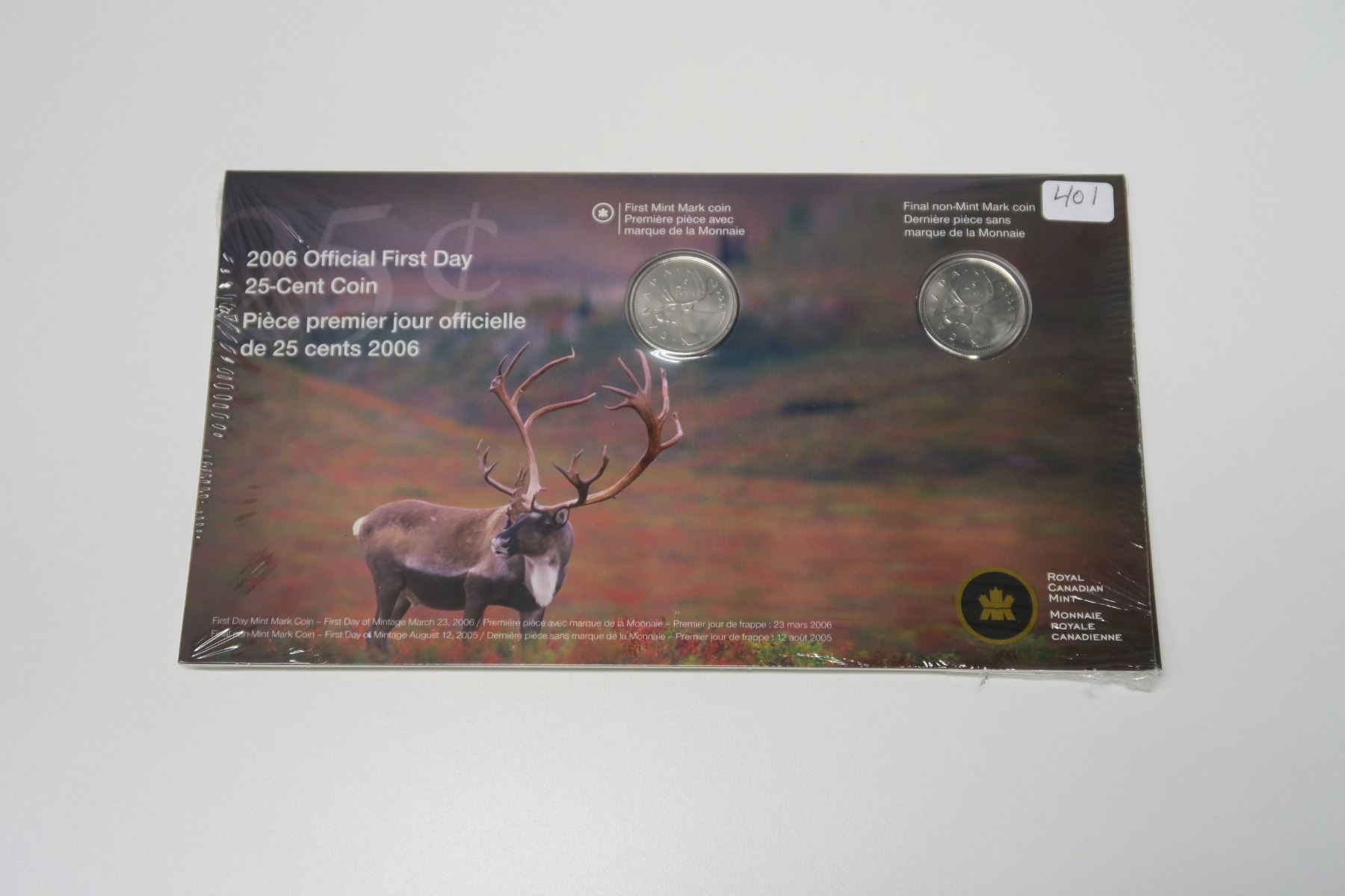 2006 Official First Day 25-Cent Coin. Contains 2 2006 25 Cents: 2006P Plated (no mint mark) and 2006 new mint mark. In original unopened RCM folder.
