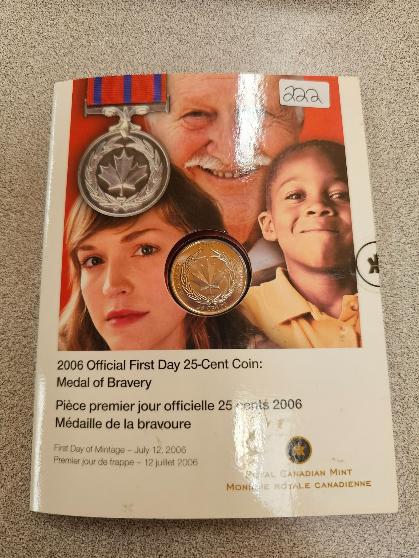 2006 Official First Day Medal of Bravery 25 Cent Coin. As issued in unopened Royal Canadian Mint folder.