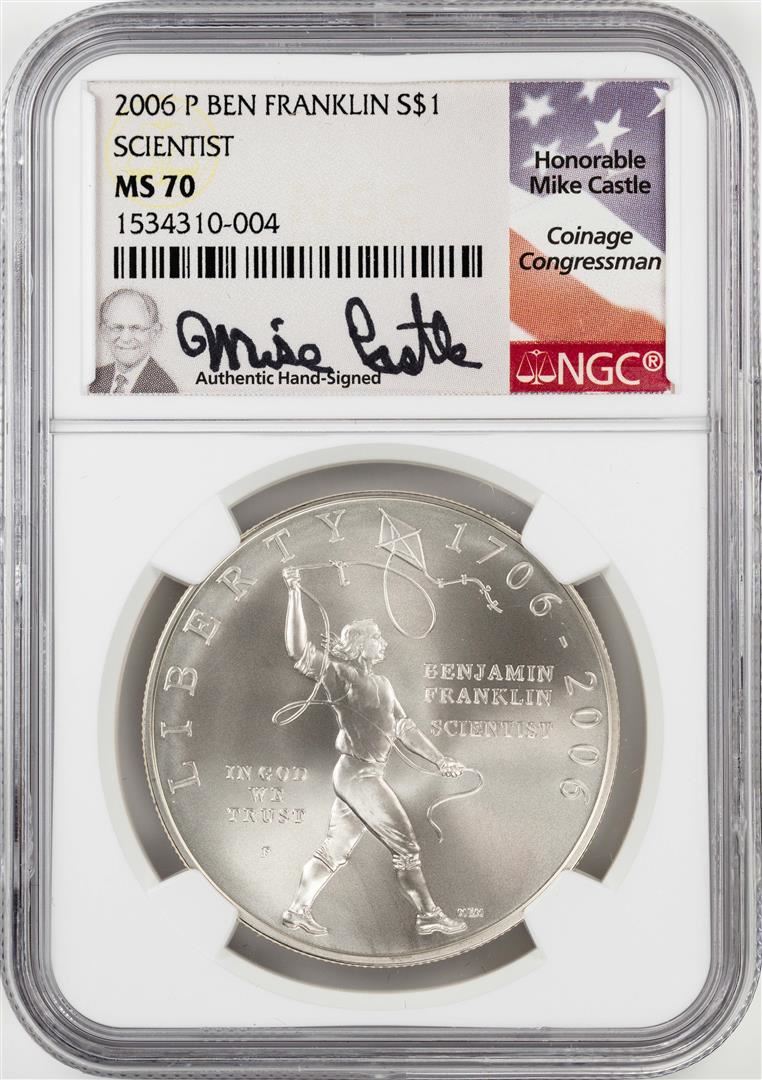 2006-P $1 Ben Franklin Scientist Silver Dollar Coin NGC MS70 Mike Castle Signature