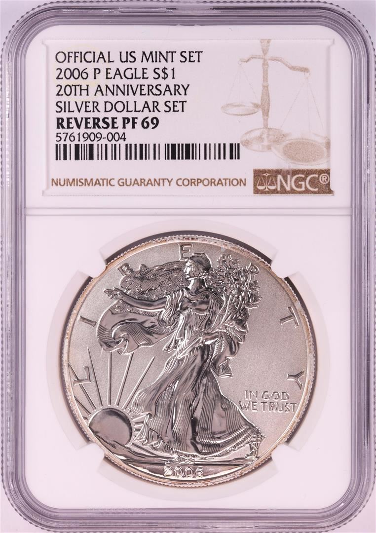 One 2006-P $1 Reverse Proof American Silver Eagle Coin NGC PF69. NGC Certified.