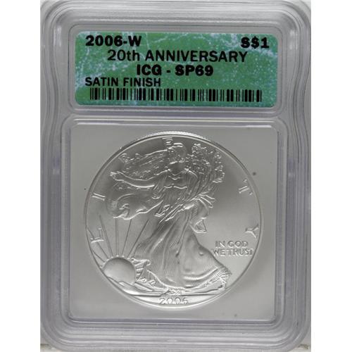 <B>2006-P $1 Reverse Proof PR69 ICG; 2006-W PR69 Deep Cameo ICG;</B></I> and a <B>2006-W SP69 Satin Finish ICG.</B></I><BR><BR><b>Shipping:</b> Coins & Currency (<a target="_blank" href="http://www.heritageauctions.com/common/shipping.php">view shipping information</a>)