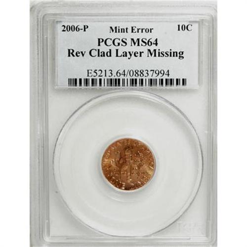 <B>2006-P 10C Roosevelt Dime--Reverse Clad Layer Missing--MS64 PCGS.</B></I> <BR><BR><b>Shipping:</b> Coins & Currency (<a target="_blank" href="http://www.heritageauctions.com/common/shipping.php">view shipping information</a>)