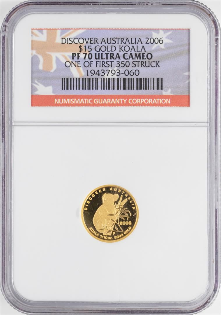 One 2006-P $15 Australia Koala Gold Coin NGC PF70 Ultra Cameo. NGC Certified.