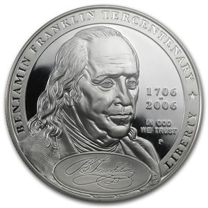 2006-P B.Franklin Founding Father $1 Silver Comm. PR-70 **|**|** Year: 2006 ; Mint Mark: PR-70 DCAM ; Grade: P - Philadelphia ; Denomination: 1 ; MSRP: $300