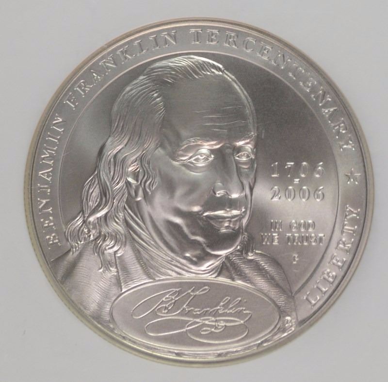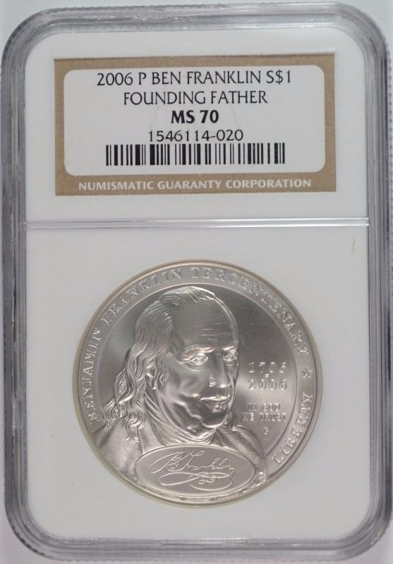 2006-P BEN FRANKLIN FOUNDING FATHER SILVER COMMEMORATIVE DOLLAR, NGC MS-70