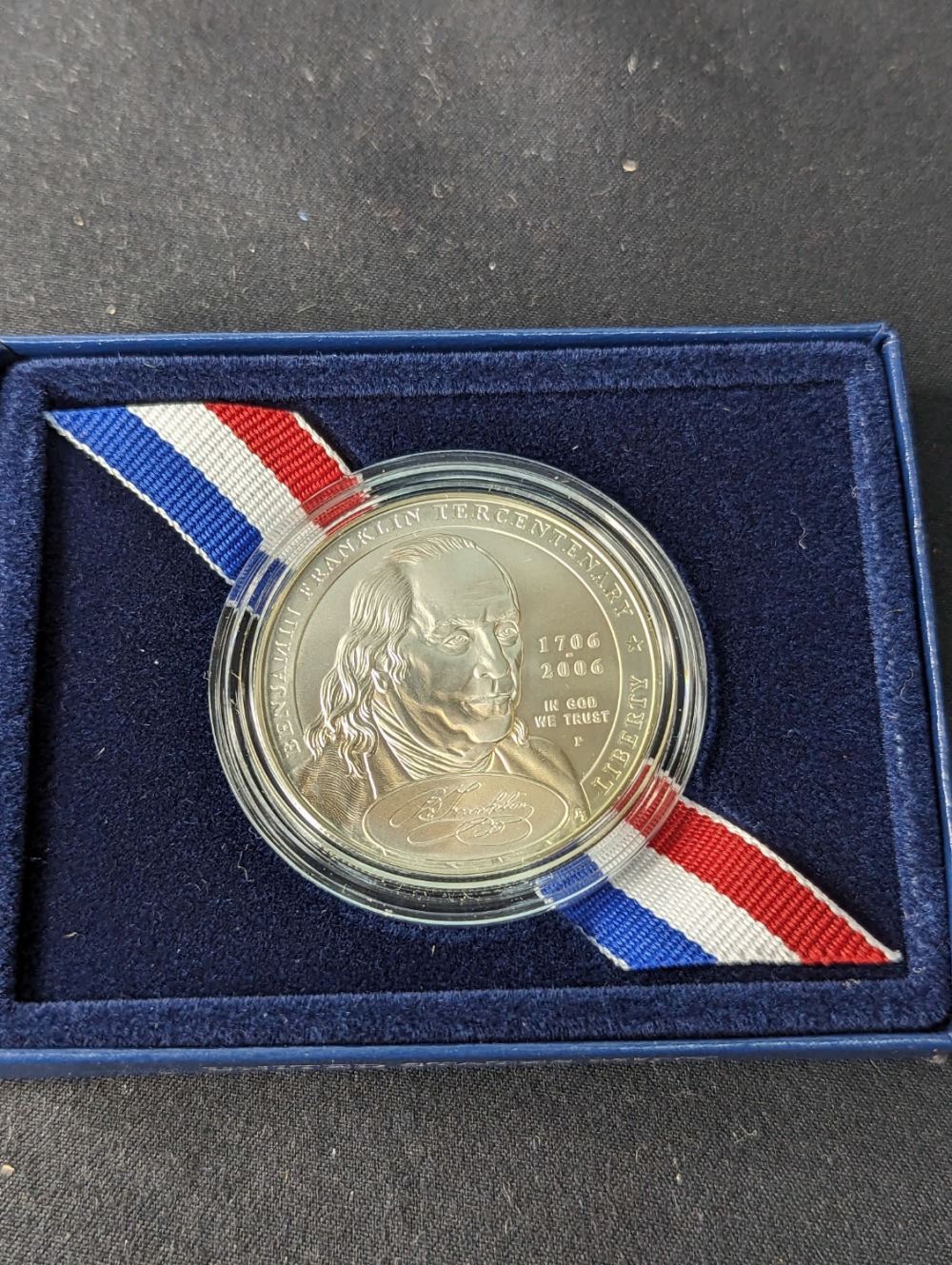 A 2006 P Benjamin Franklin Commemorative Silver Dollar Uncirculated. A Nice commemorative Silver Dollar for one of our Founding Fathers!!
