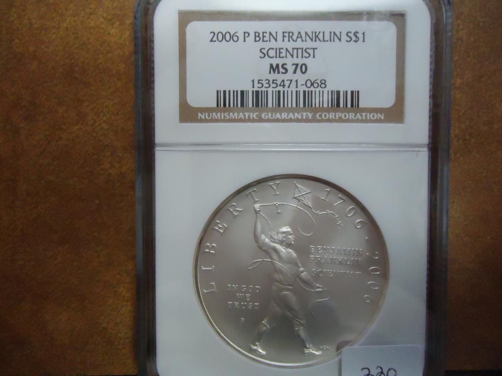 2006-P FRANKLIN "SCIENTIST" SILVER DOLLAR NGC MS70