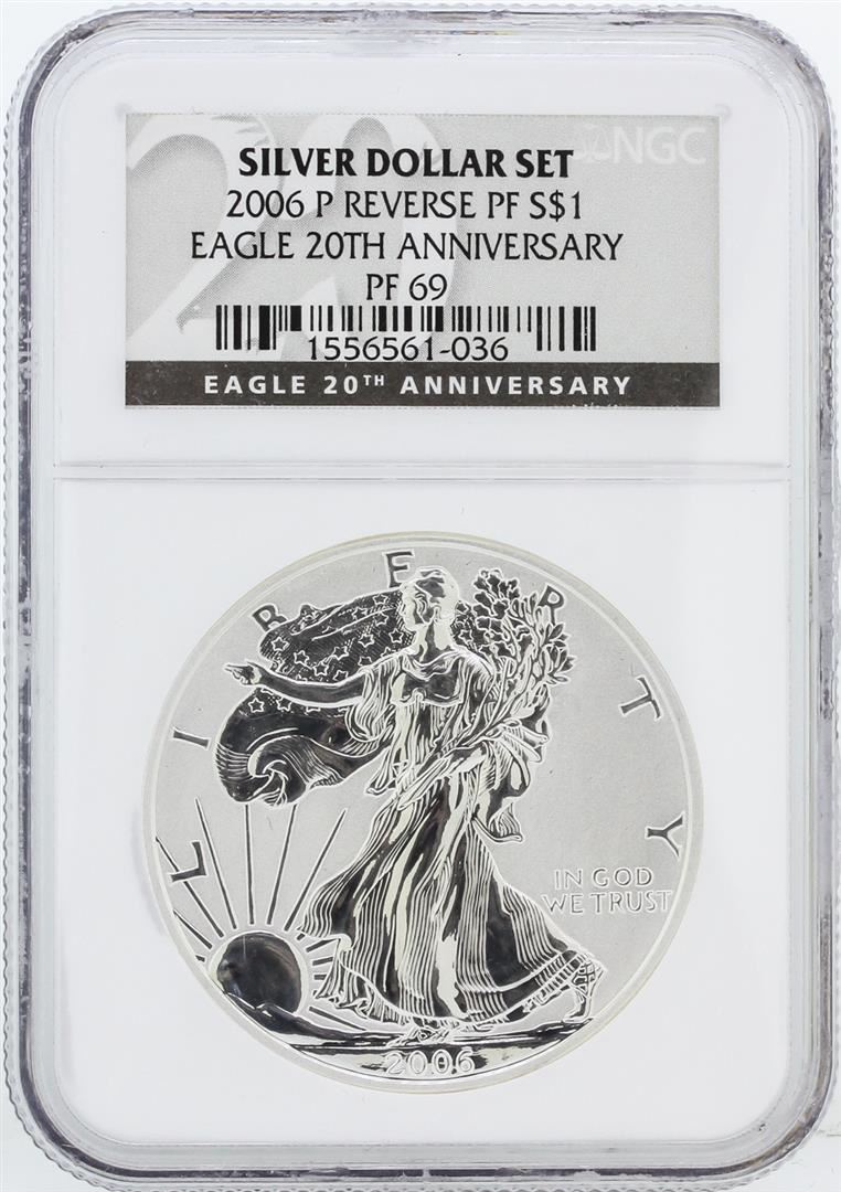 One 2006-P Reverse Proof NGC PF69 20th Anniversary American Silver Eagle Dollar. NGC Certified.