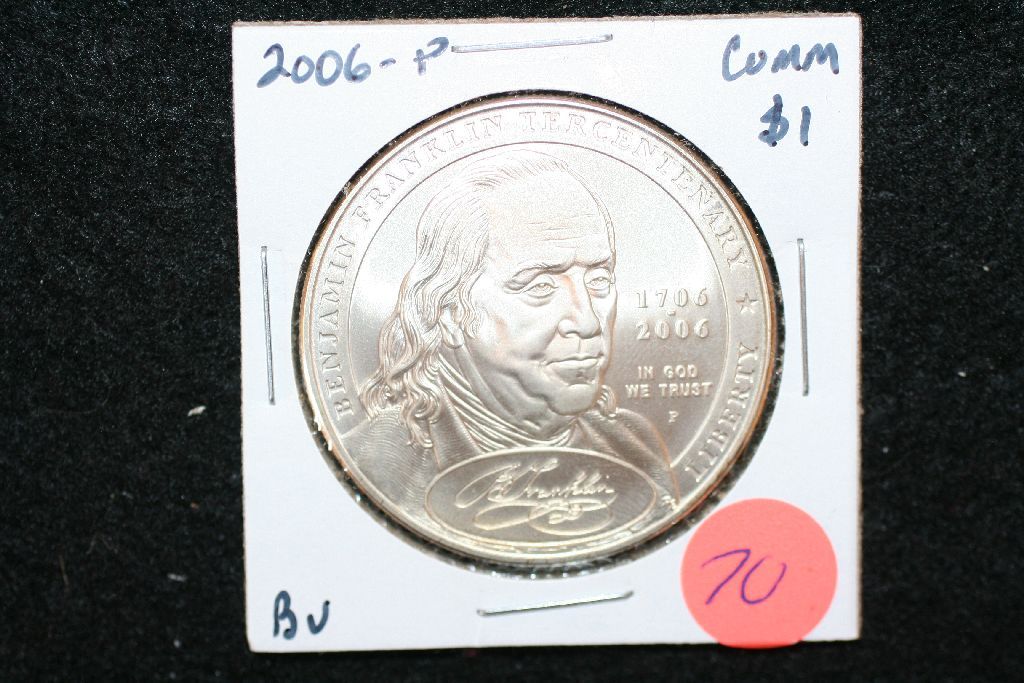 2006-P US Benjamin Franklin Tercentennial-Continental Currency Commerative $1 Coin, BU