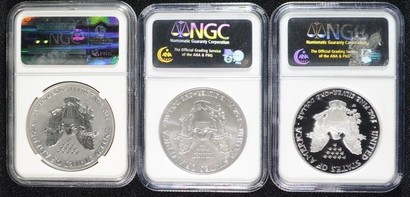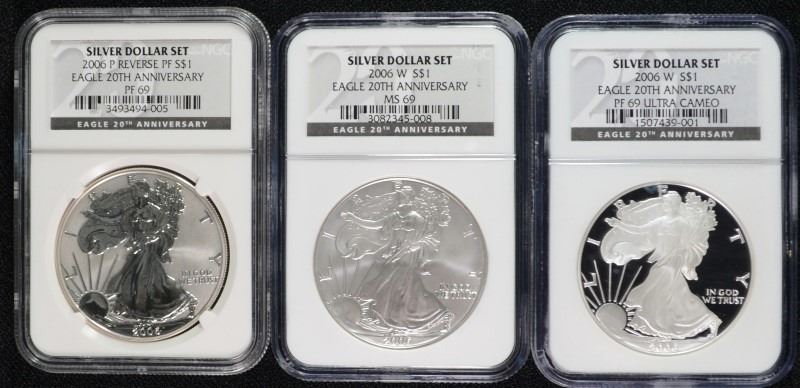 2006 P/W 20th ANNIVERSARY EAGLE SET (3 Pcs) NGC MS69, PF69, PF69 ULTRA CAMEO