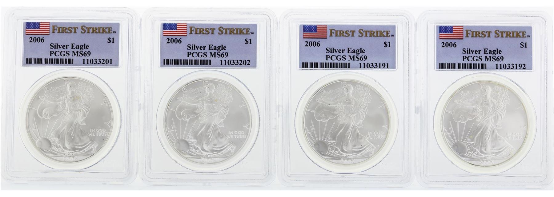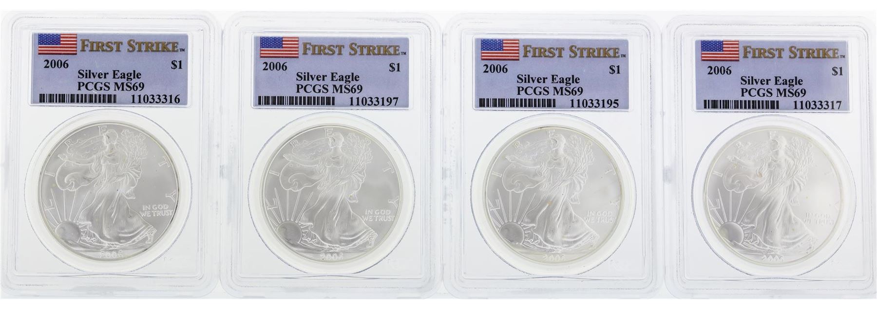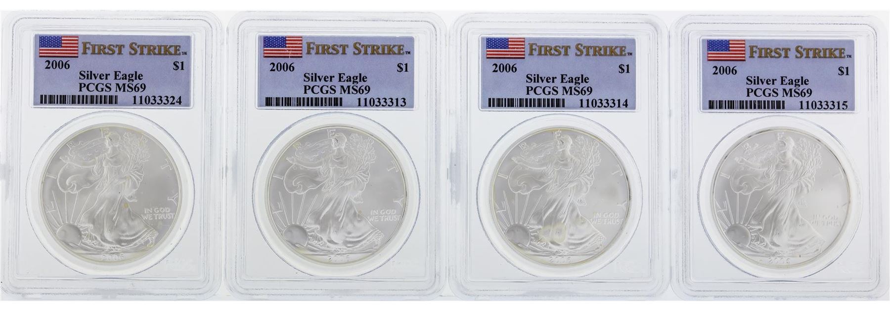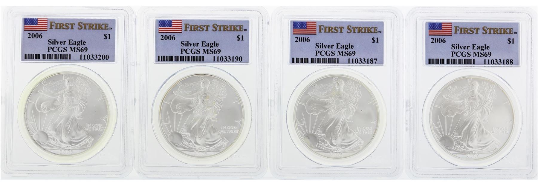 Set of 20 2006 PCGS MS69 Silver Eagle Coins. PCGS Certified.