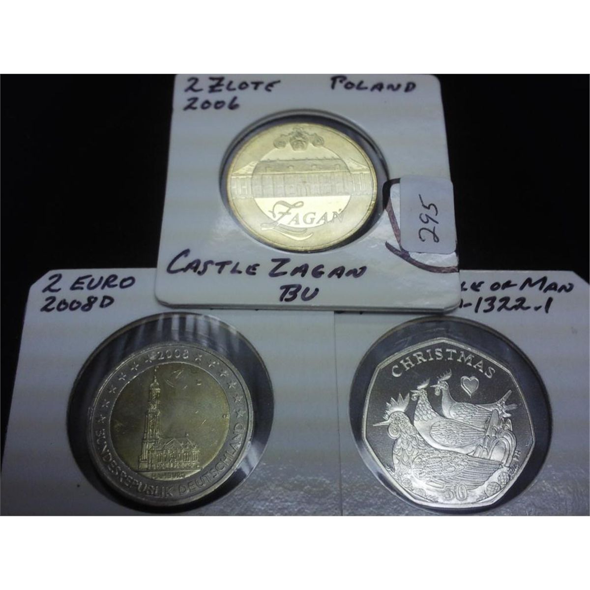 UNC AND 2007 ISLE OF MAN 50 PENCE (UNC), POLAND-CASTLE ZAGAN, GERMANY-HAMBURG CATHEDRIAL AND ISLE OF MAN-CHRISTMAS FRENCH HENS