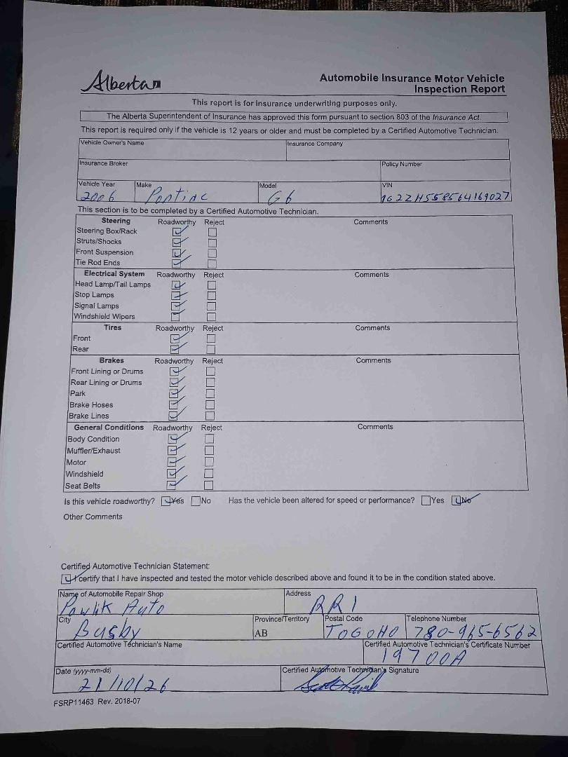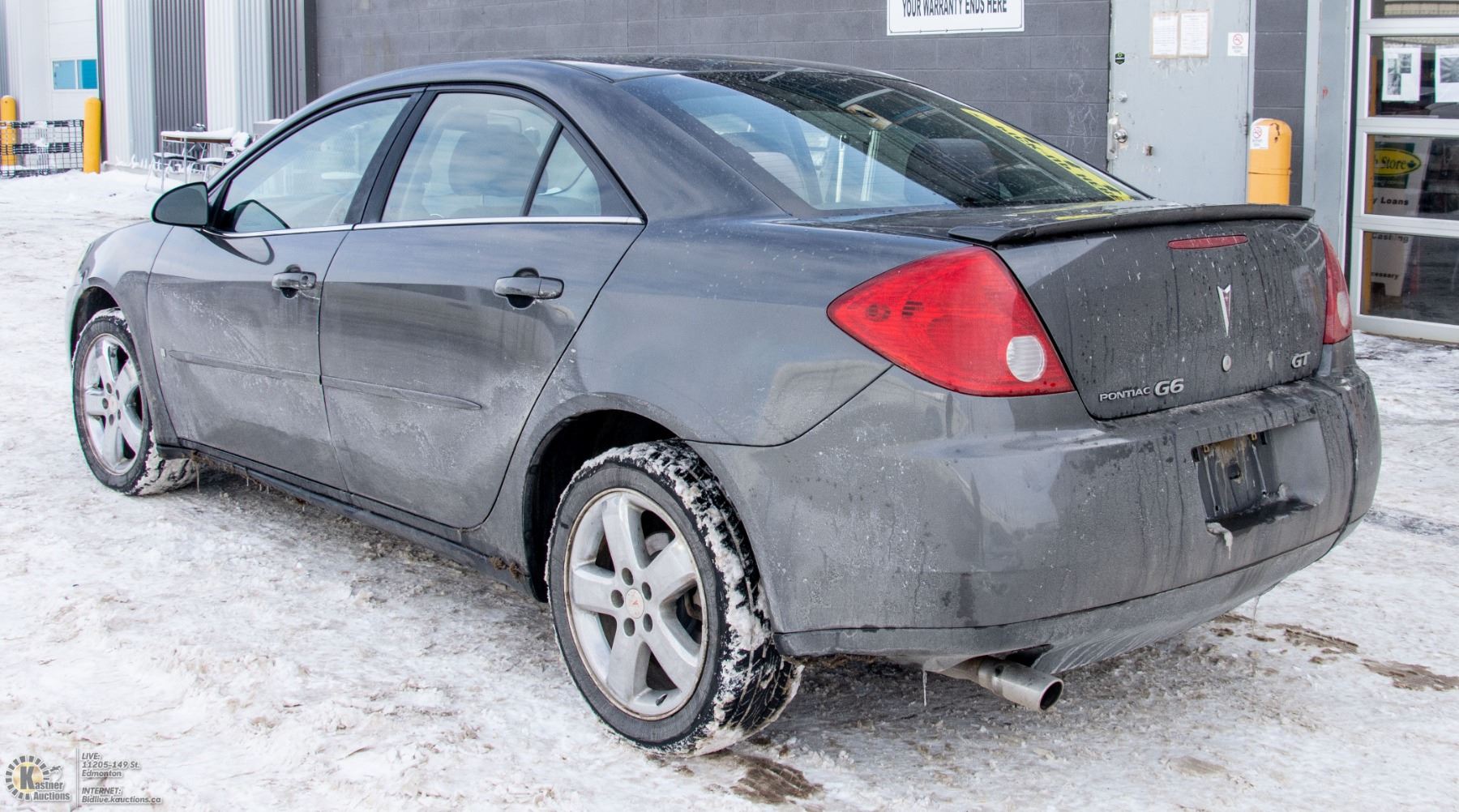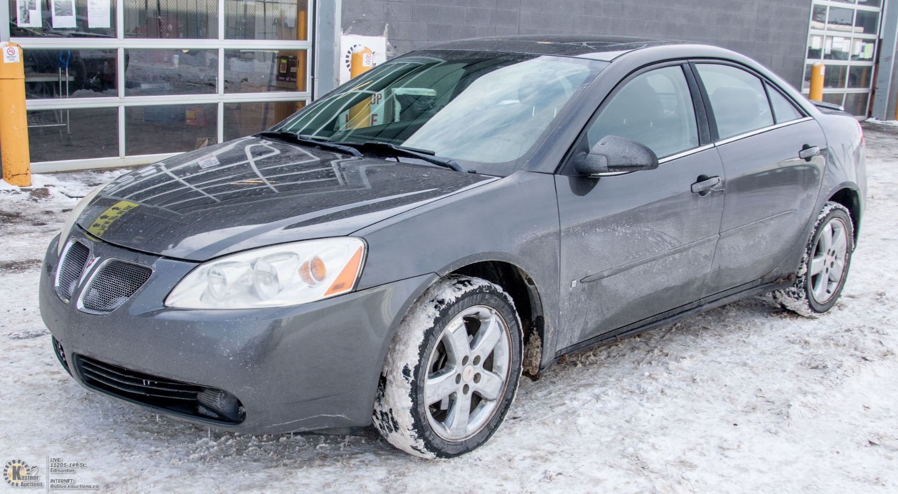 VIN: 1G2ZH558564169O27 KM: 159,723 Engine: V6 3.4L Color: DARK GREY 2006 PONTIAC G6, FEATURES INCLUDE AIR CONDITIONING, CRUISE CONTROL, POWER DOOR LOCKS, POWER WINDOWS, SUNROOF, AUTOMATIC TRANSMISSION, 6 SPEED WITH OVERDRIVE, CLOTH SEATS, POWER MIRRORS, REMOTE STARTER, AM/FM RADIO, CD PLAYER, CHIPS ON WINDSHIELD, KEY FOB BATTERY NEEDS REPLACEMENT, HALF A TANK OF GAS. ALL BIDS SUBJECT TO BANK, BAILIFF, OR OWNER APPROVAL. MUST BE 18 OR OLDER IN ORDER TO PURCHASE OR BID. ALL VEHICLES ARE SOLD AS IS.