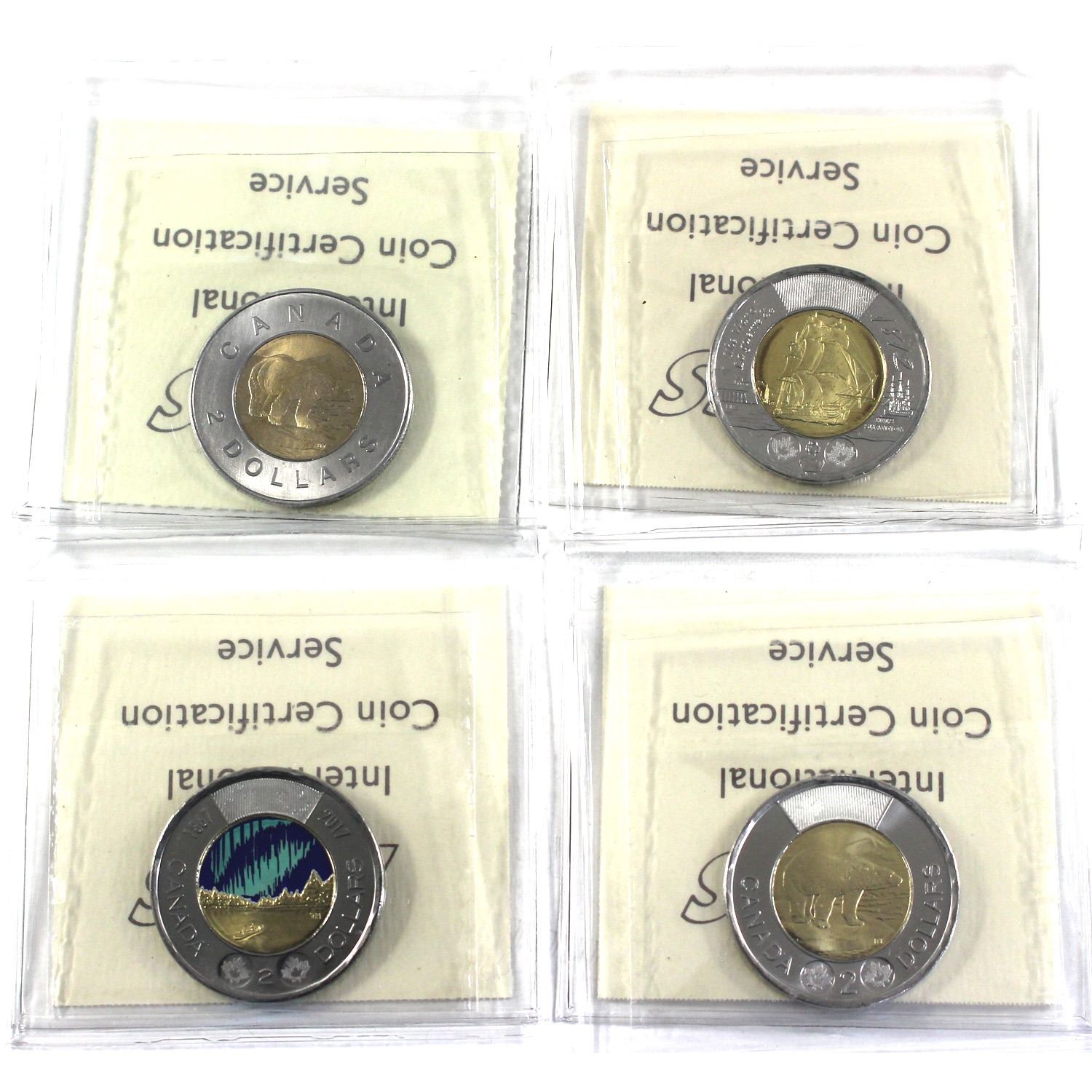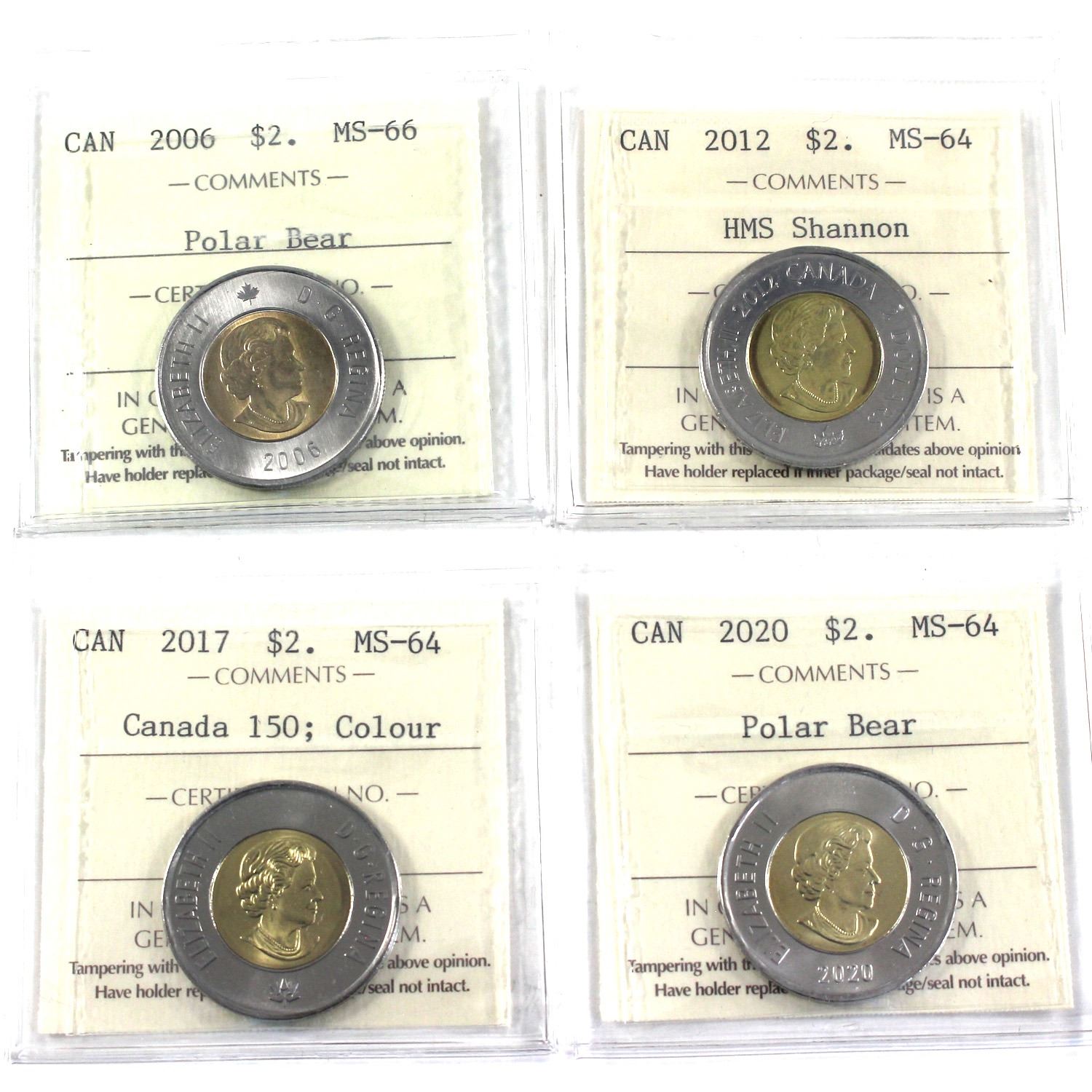 2006 Polar Bear MS-66, 2012 HMS Shannon MS-64, 2017 Canada 150 coloured MS-64 & 2020 Polar Bear MS-64 all ICCS Certified. 4pcs