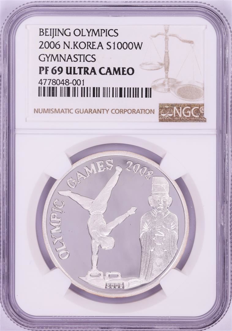 One 2006 Proof N. Korea 1000 Won Beijing Olympics Silver Coin NGC PF69 Ultra Cameo. NGC Certified.